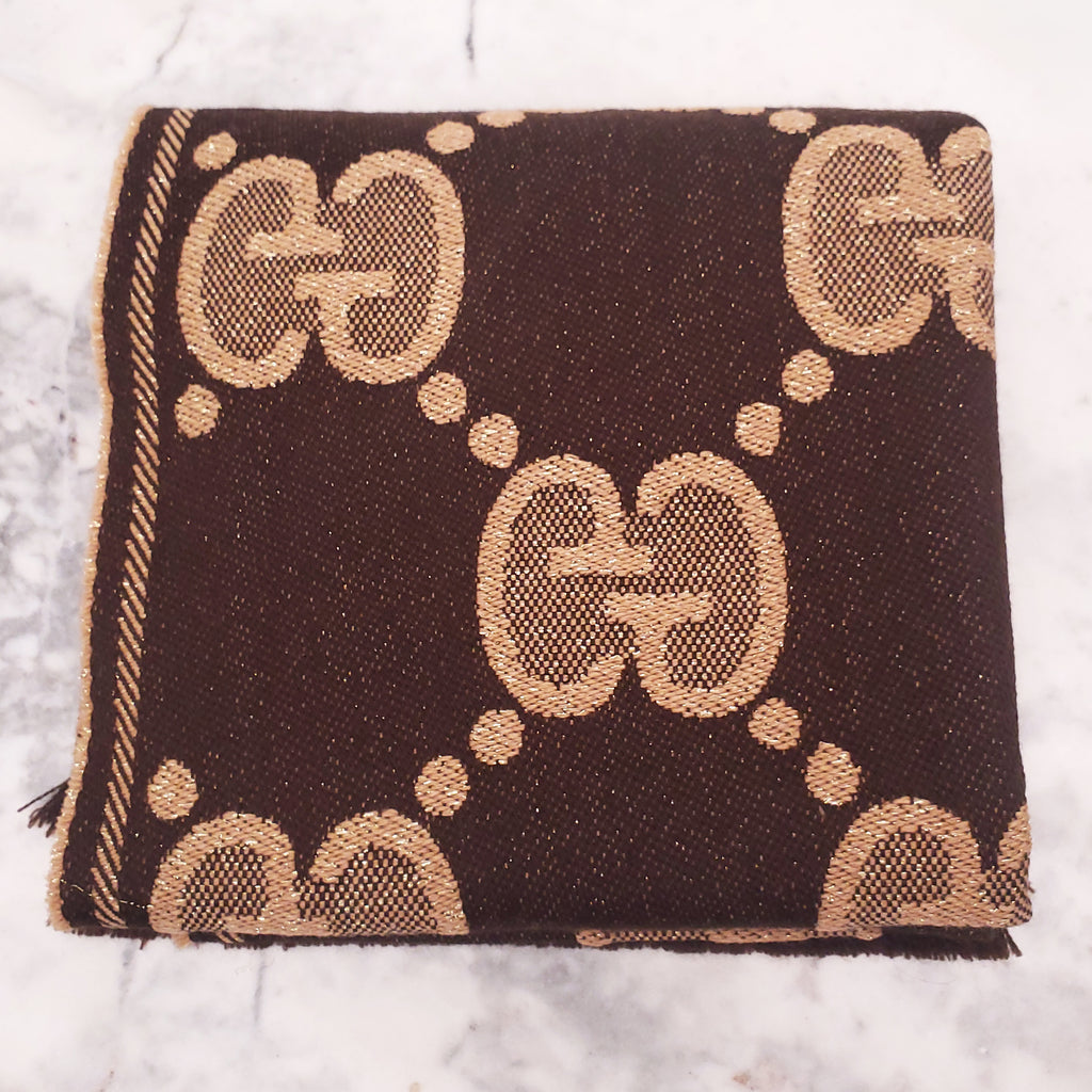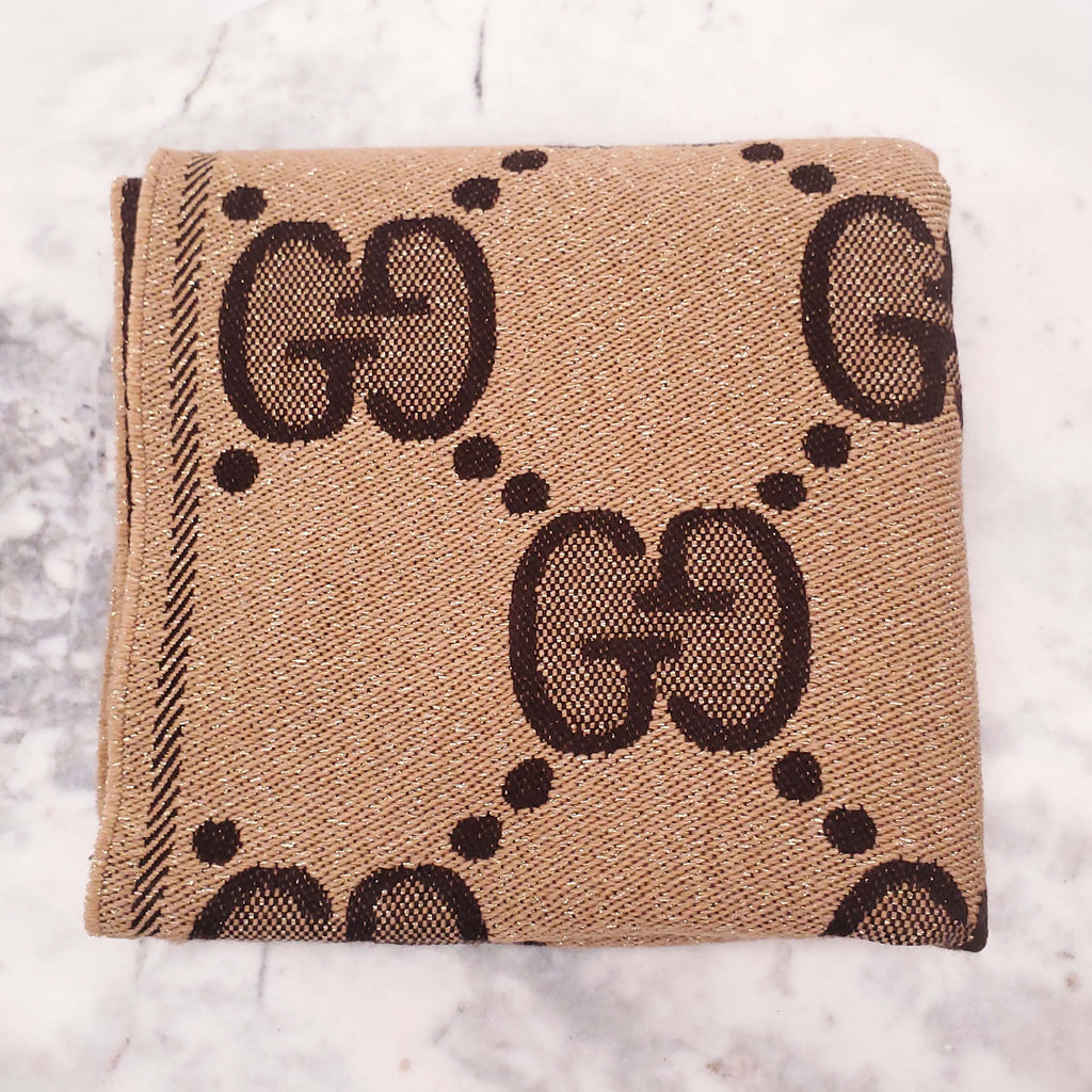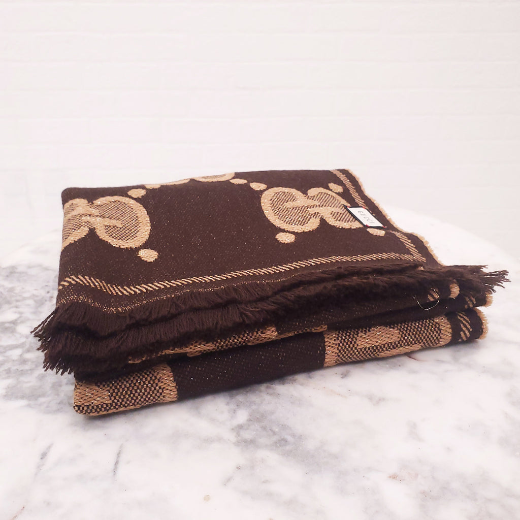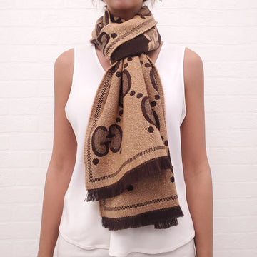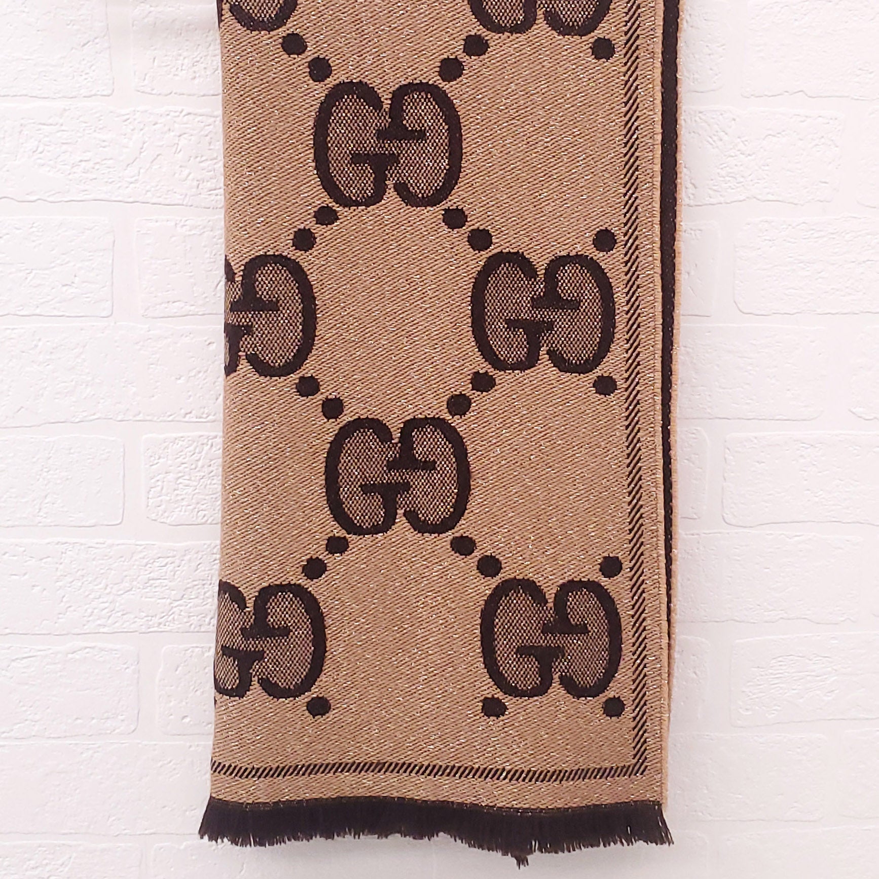 GUCCI METALLIC TAN AND BROWN 'GG WOOL JACQUARD’ SCARF