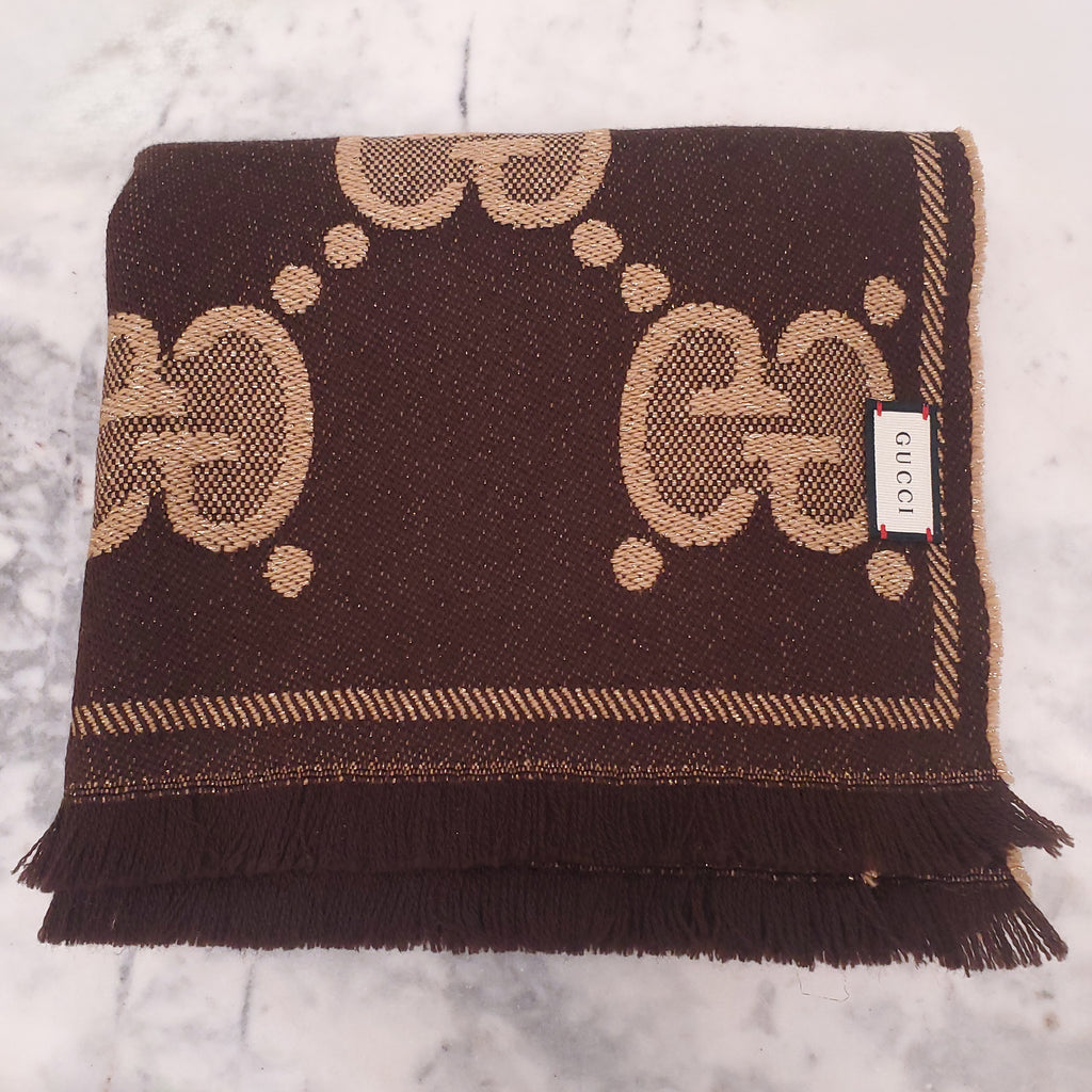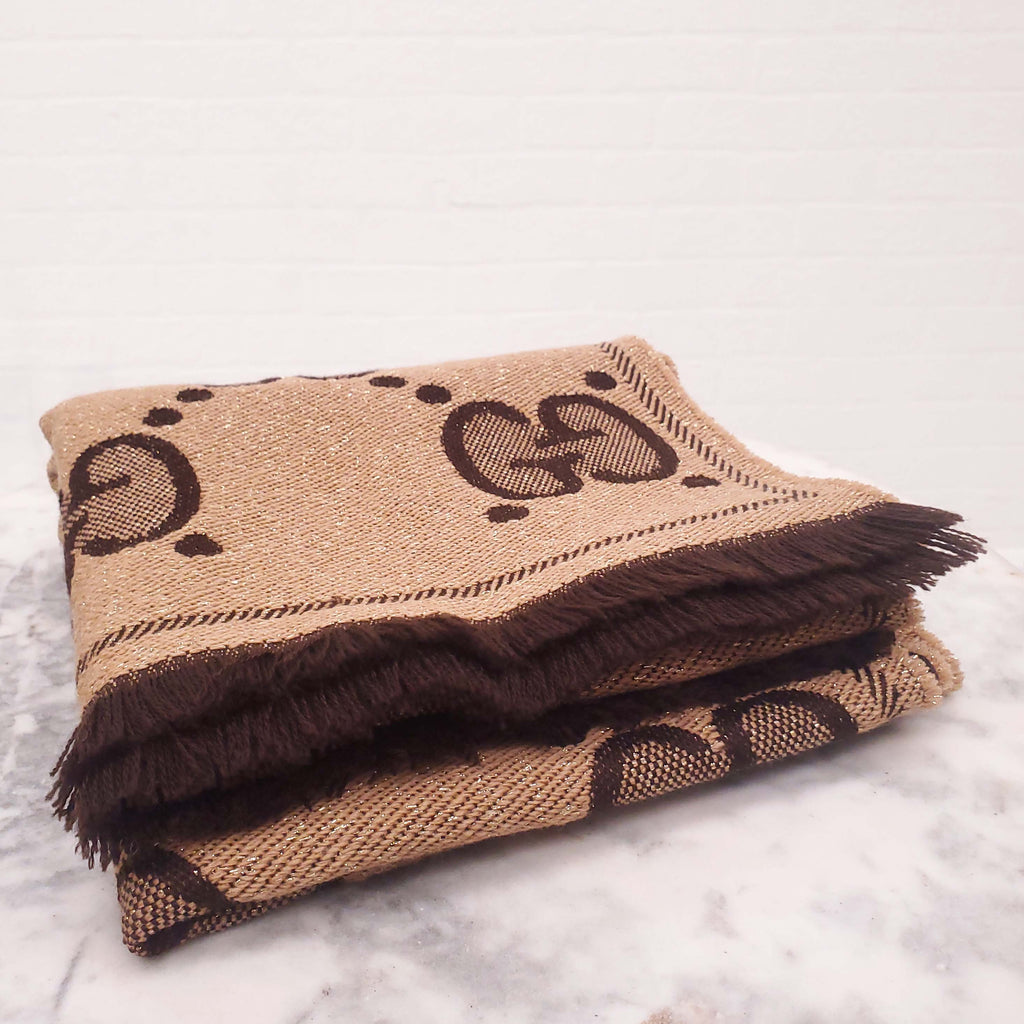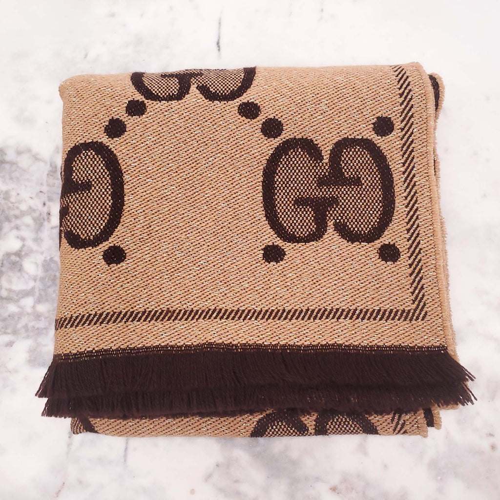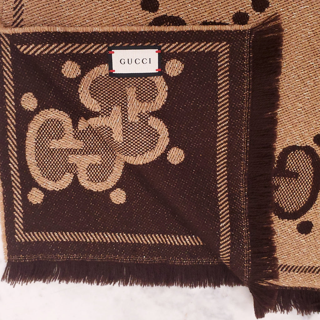 GUCCI METALLIC TAN AND BROWN 'GG WOOL JACQUARD’ SCARF