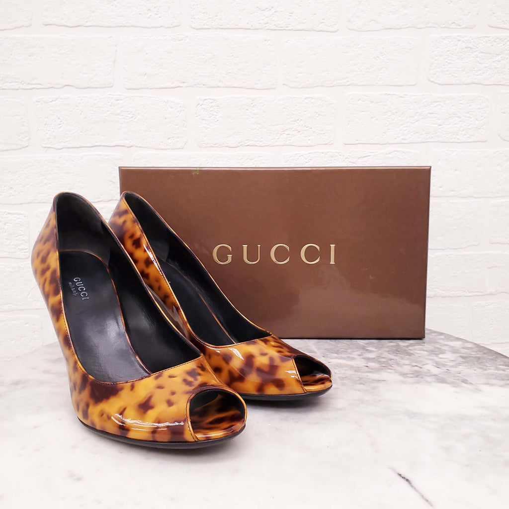 GUCCI TORTOISE WEDGE HEELS - SIZE 38.5