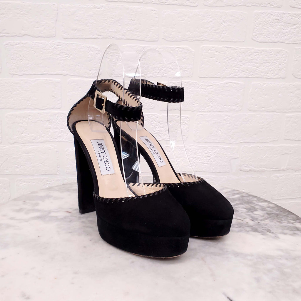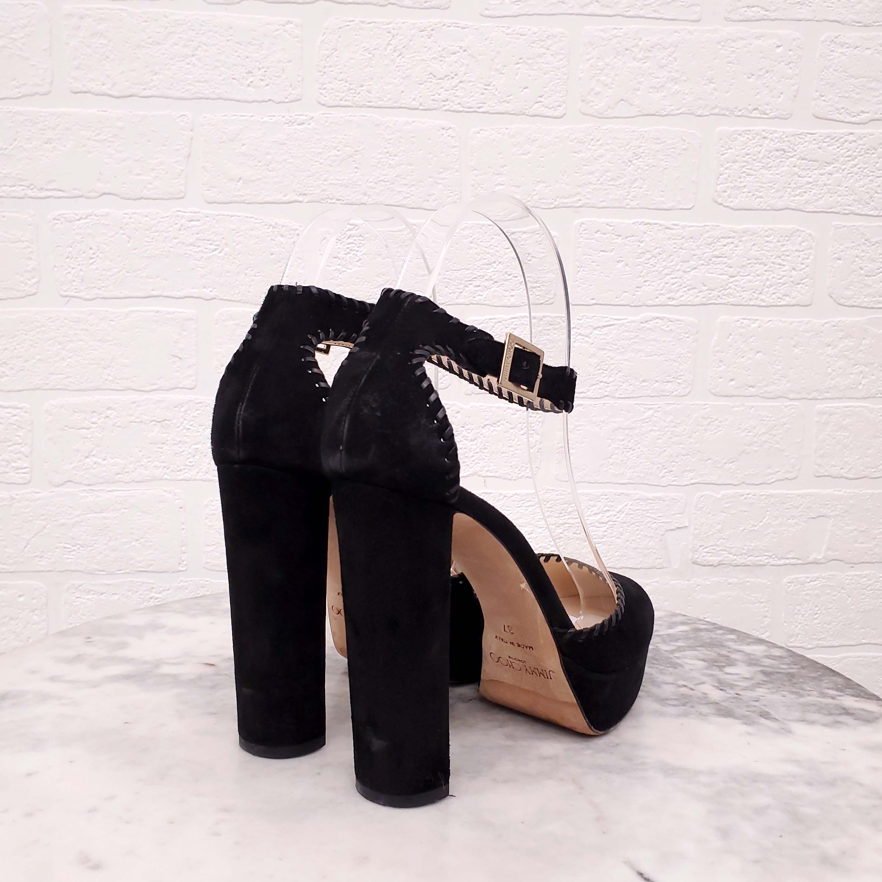 JIMMY CHOO BLACK SUEDE HEELS WITH WOVEN DETAIL - SIZE 37