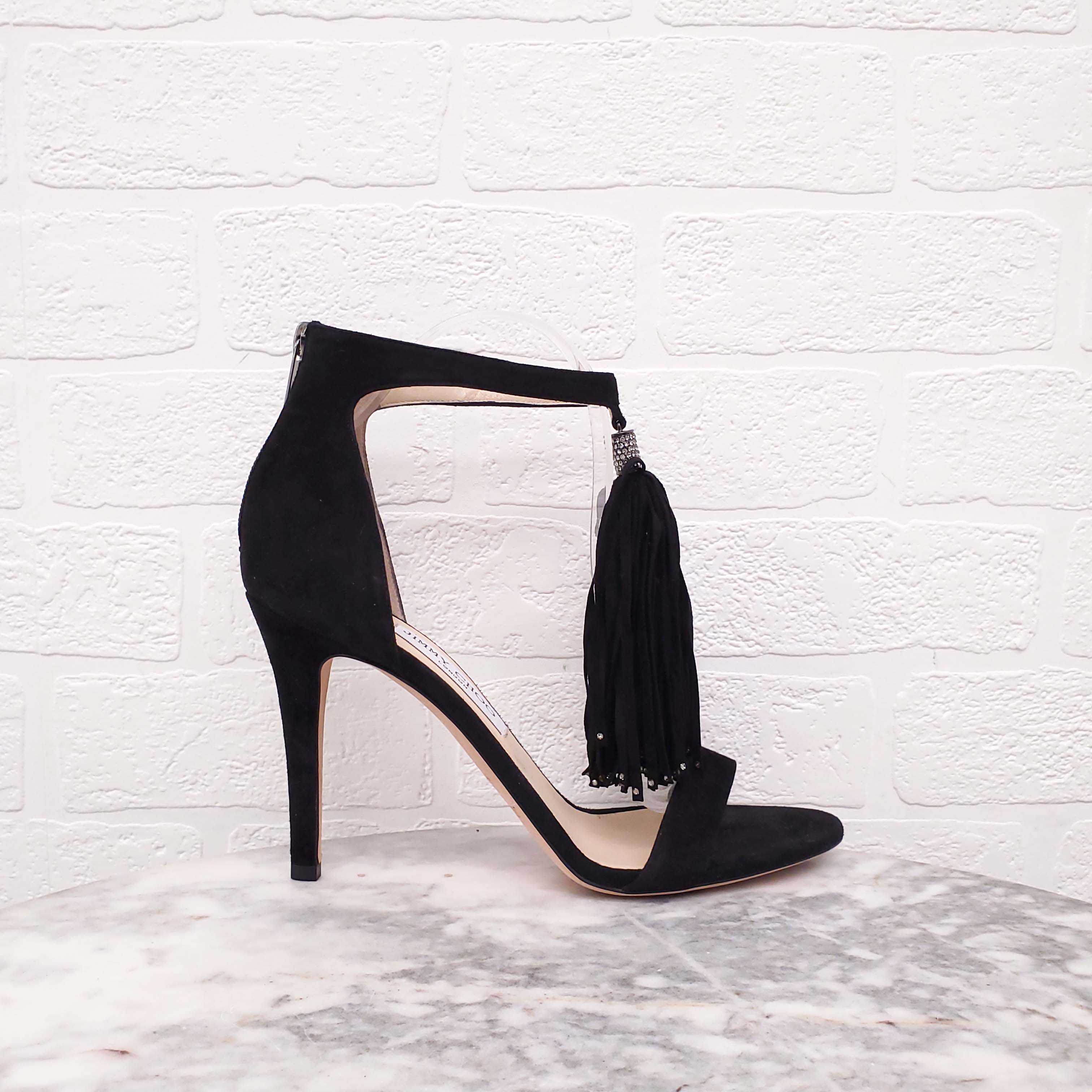 JIMMY CHOO BLACK 'VIOLA 100' CRYSTAL TASSEL HEELS - SIZE 40