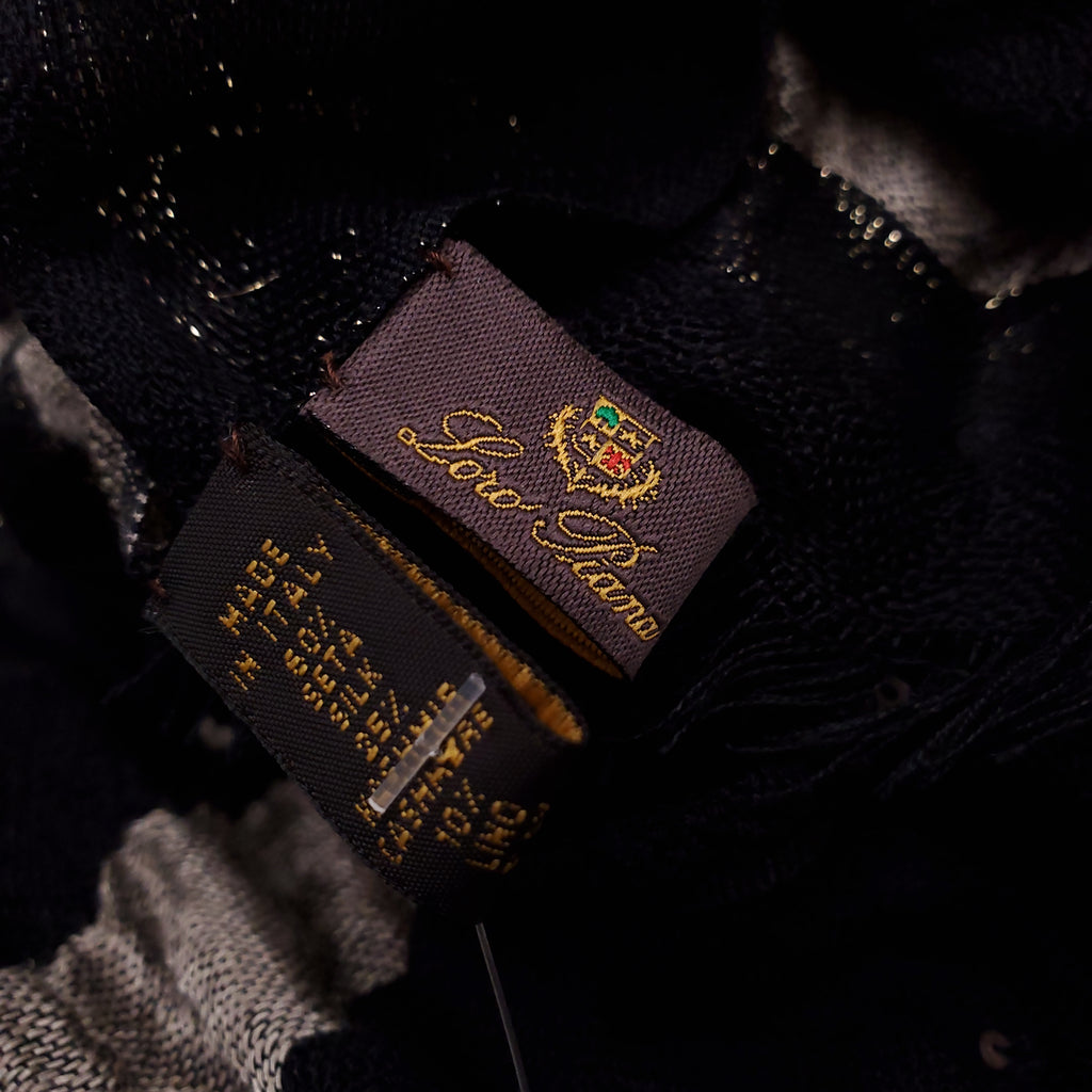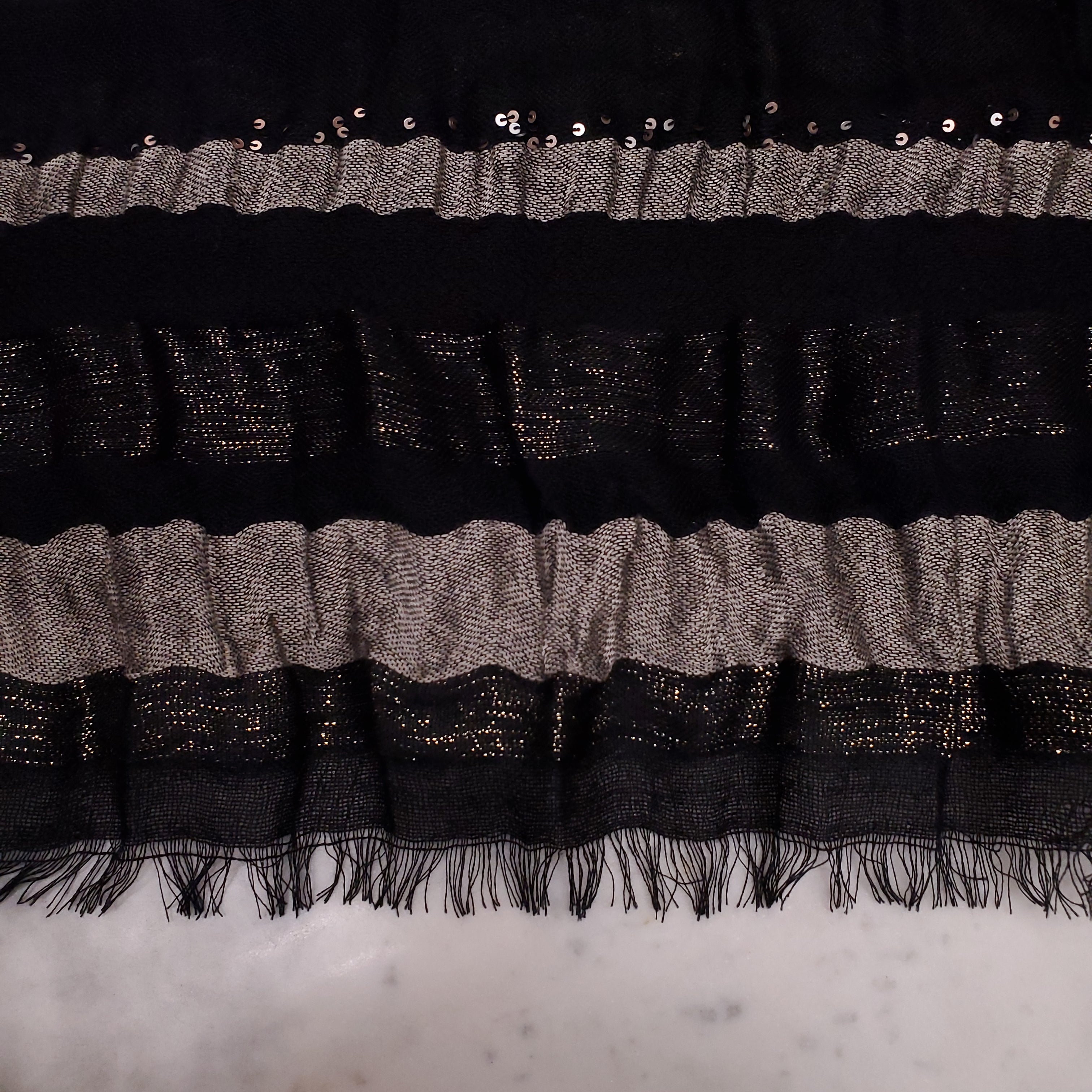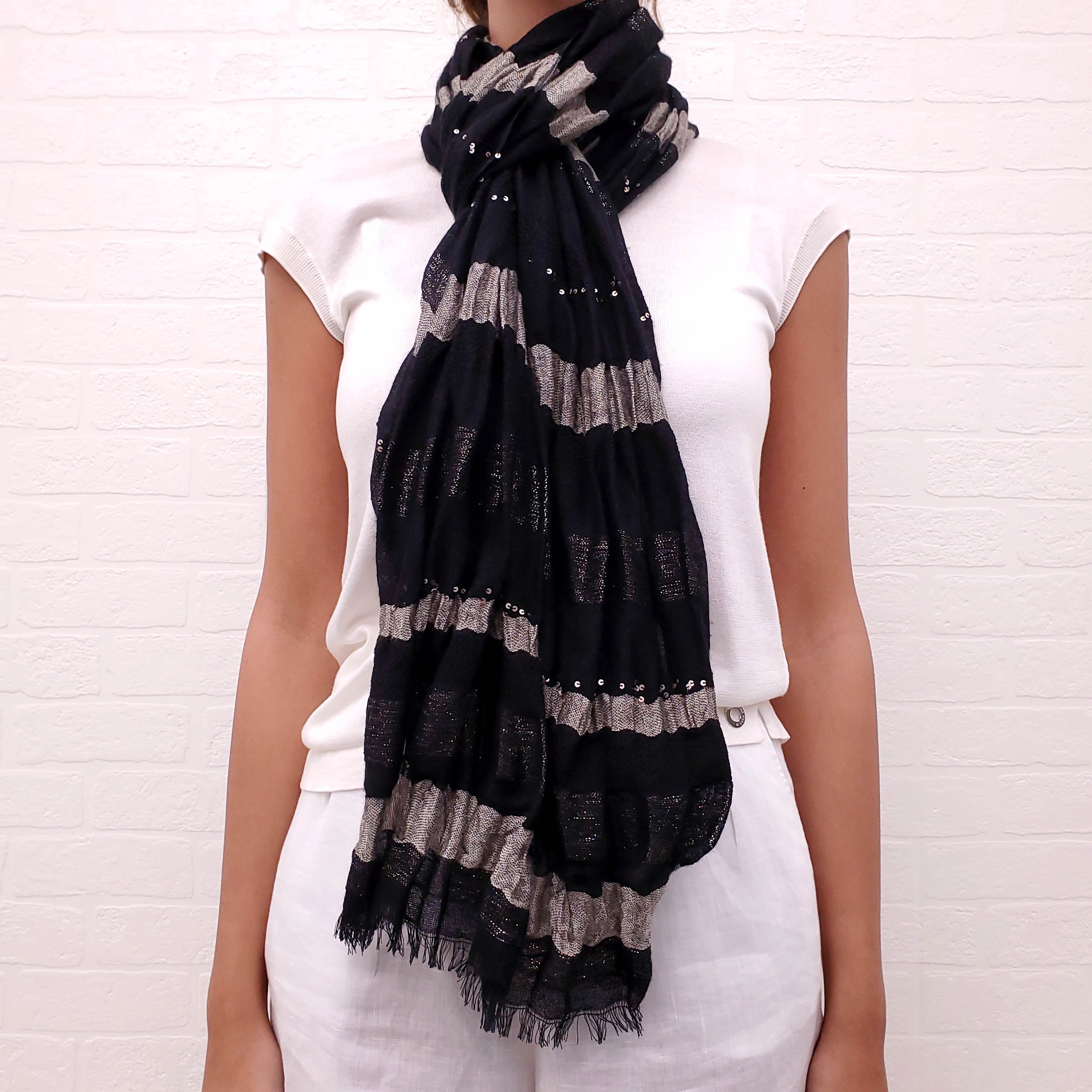 LORO PIANA BLACK SEQUIN SCARF 65% CASHMERE, 25% SILK, 10% METAL