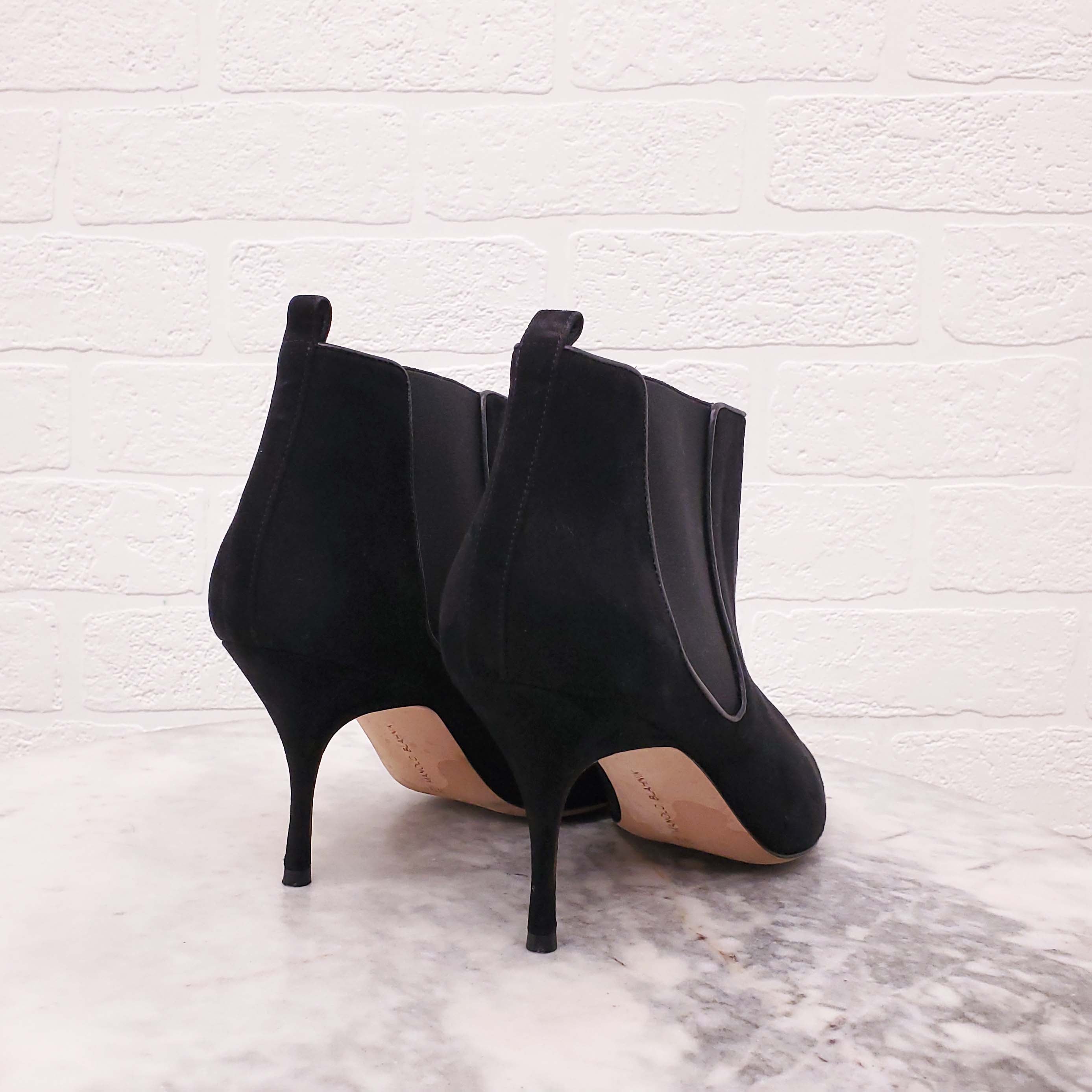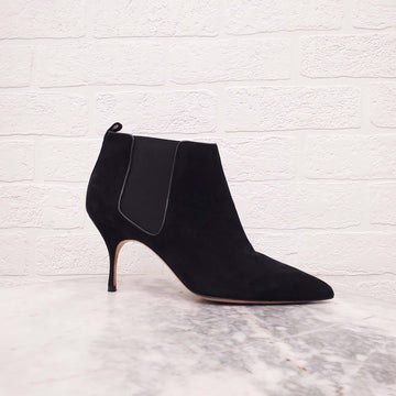 MANOLO BLAHNIK BLACK SUEDE 'DILDI' BOOTIES - SIZE 39