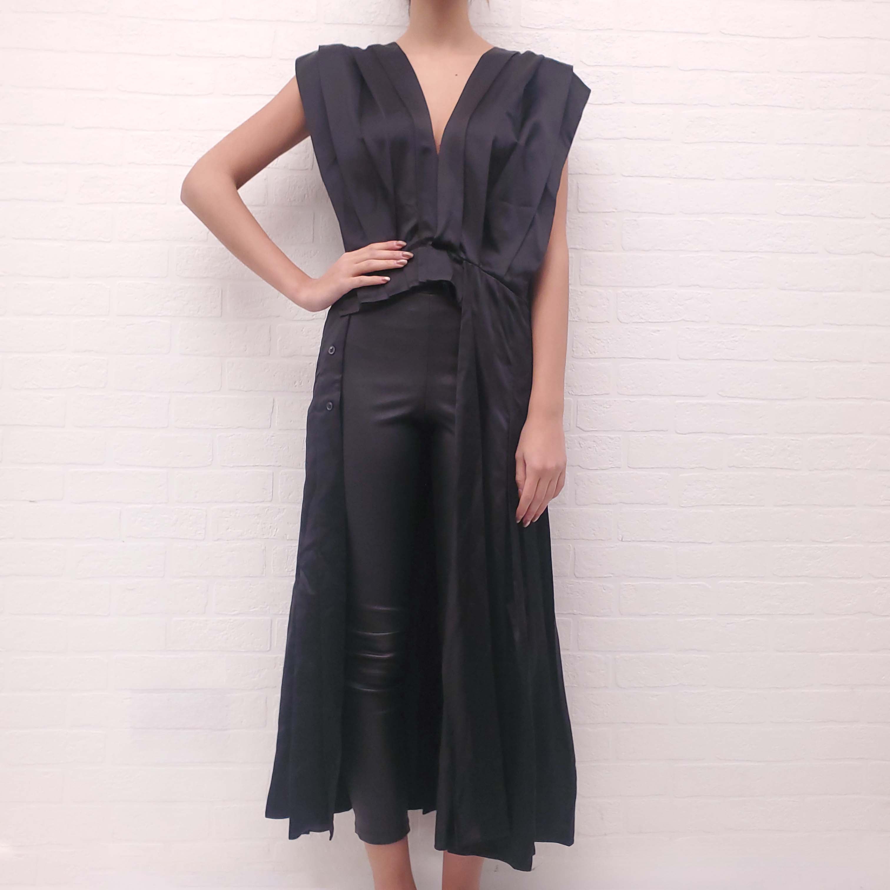 MARNI BLACK HIGH LOW PLEATED BLOUSE WITH BUTTON DETAIL - SIZE 40