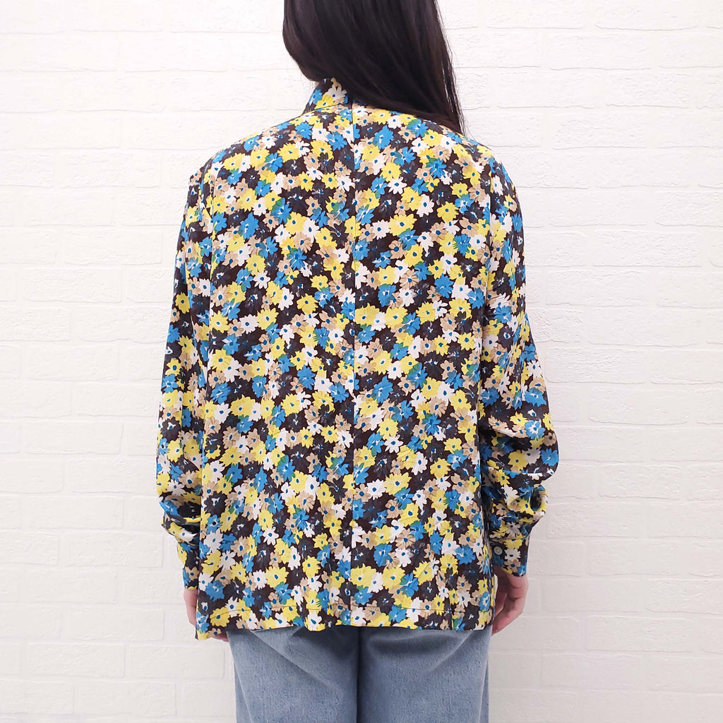 PLAN C BLUE AND YELLOW SILK FLORAL BLOUSE - SIZE 42