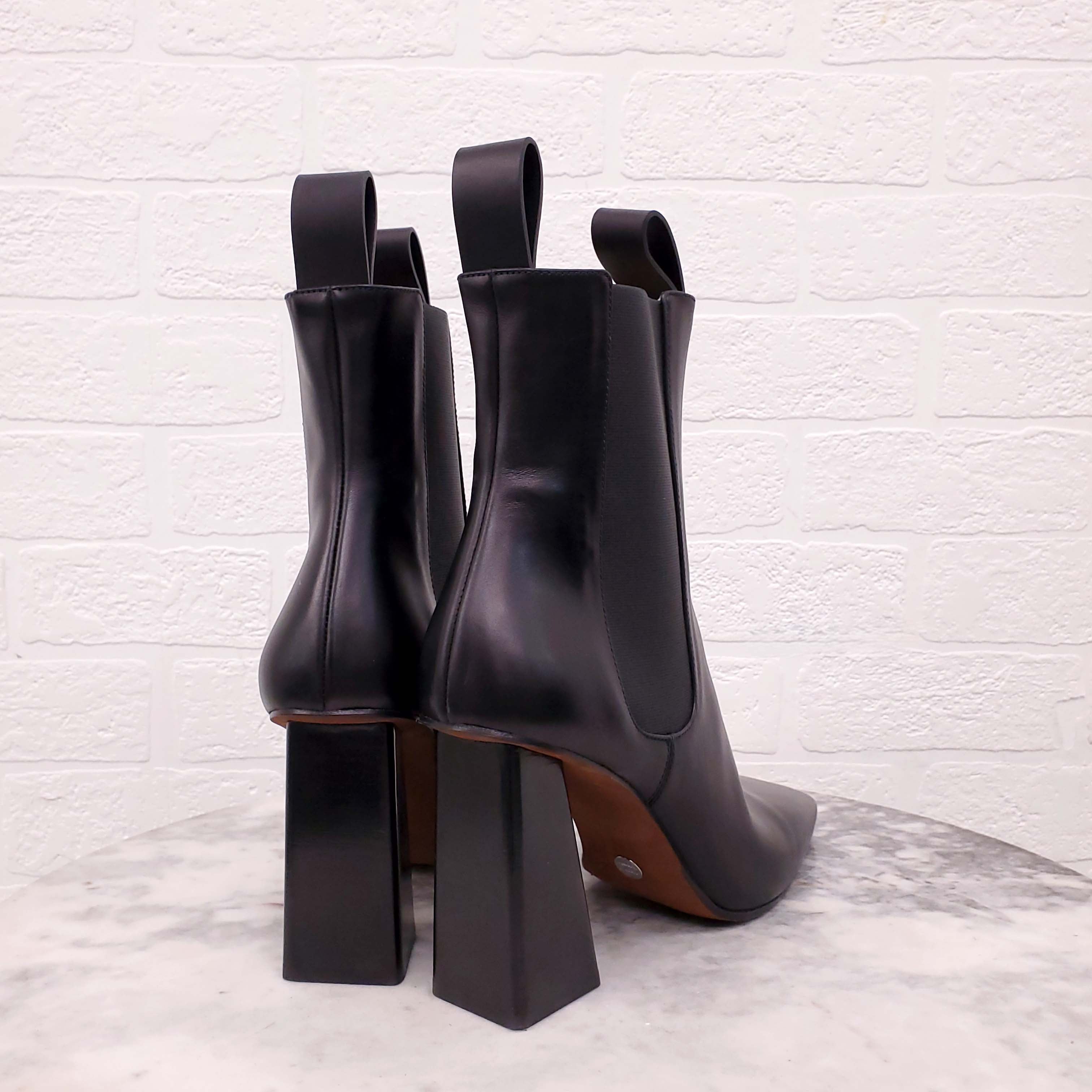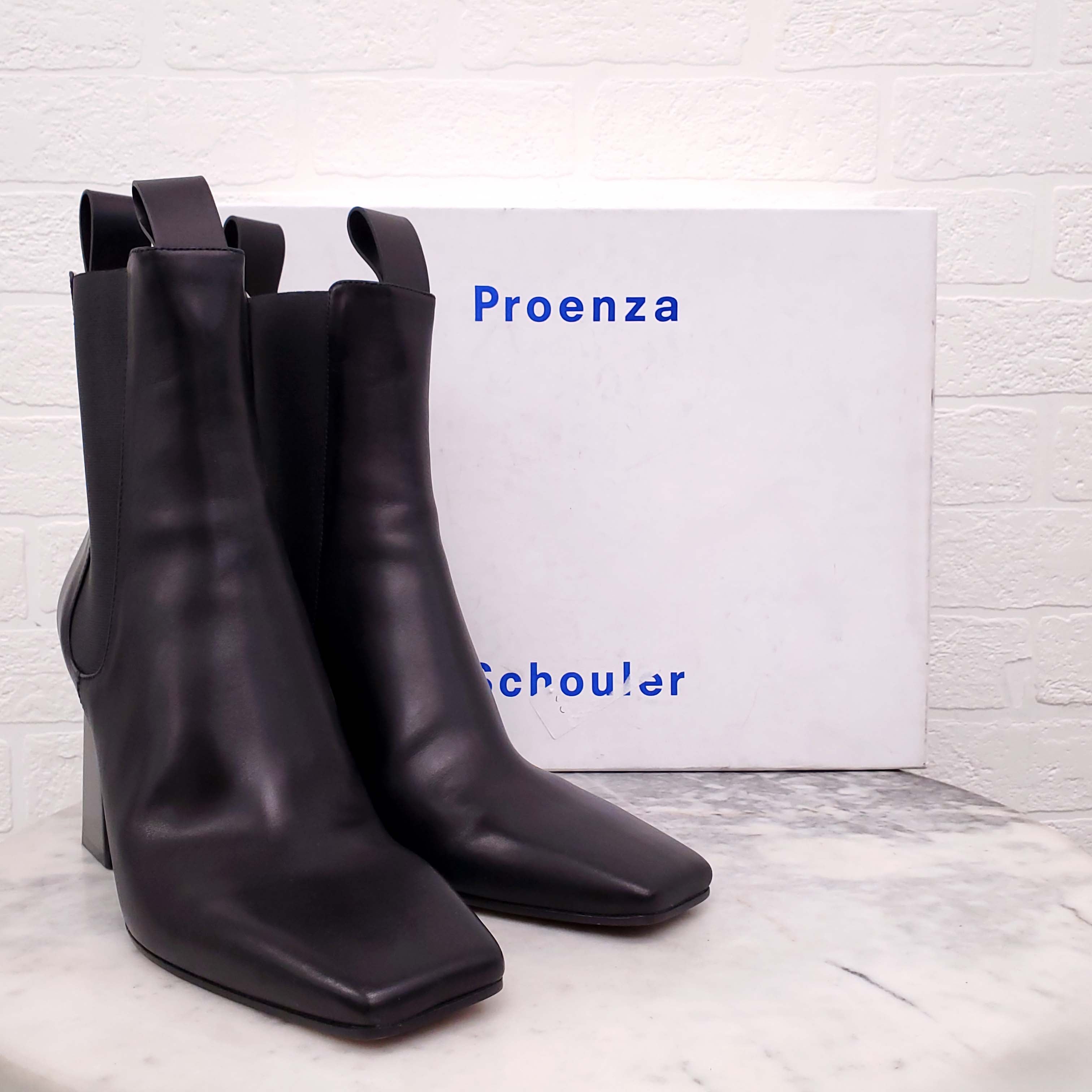 PROENZA SCHOULER BLACK LEATHER SQUARE TOE CHELSEA BOOTS - SIZE 39