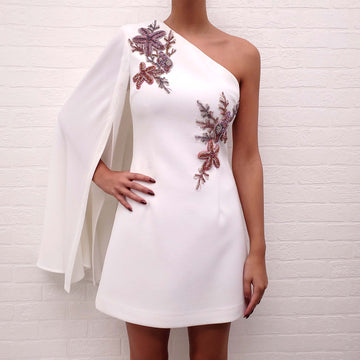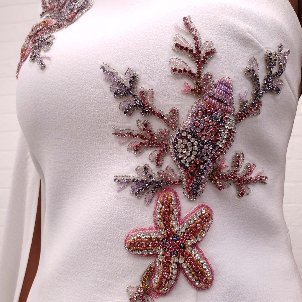 REBECCA VALLANCE WHITE ONE SHOULDER DRESS WITH CRYSTAL STARFISH - SIZE 8 AU/4 US