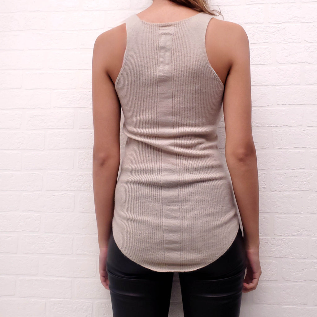 RICK OWENS SLEEVELESS BEIGE RIBBED SWEATER TANK - SIZE S