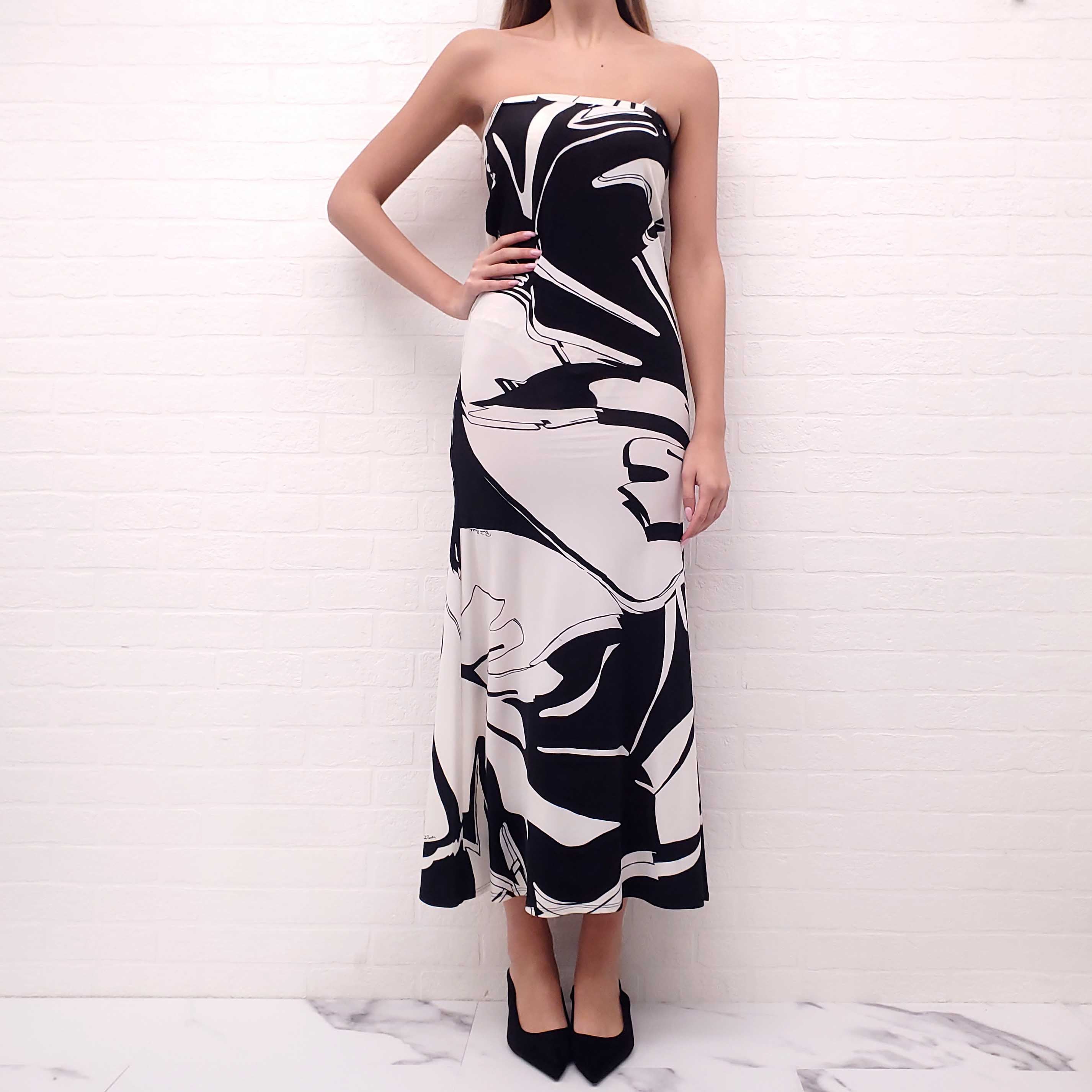 ROBERTO CAVALLI BLACK AND WHITE PATTERNED DRESS - SIZE 38