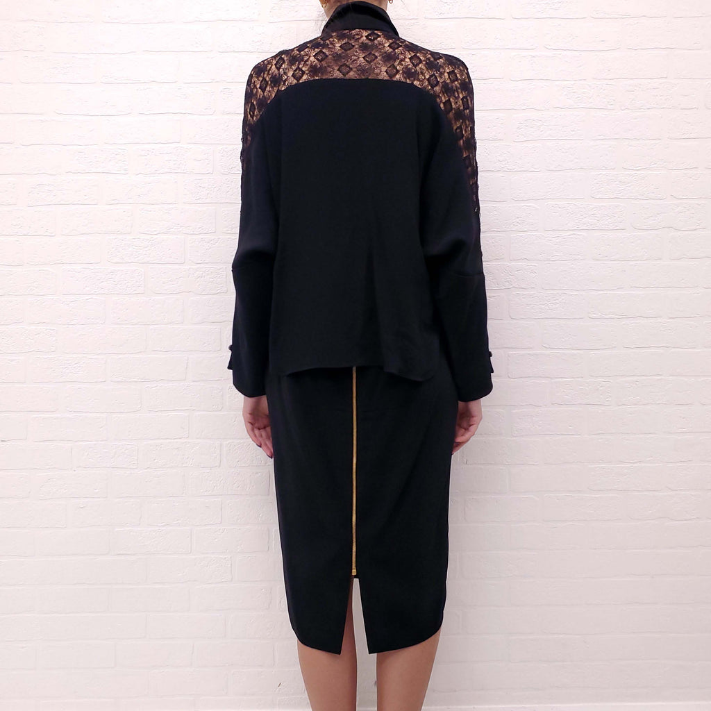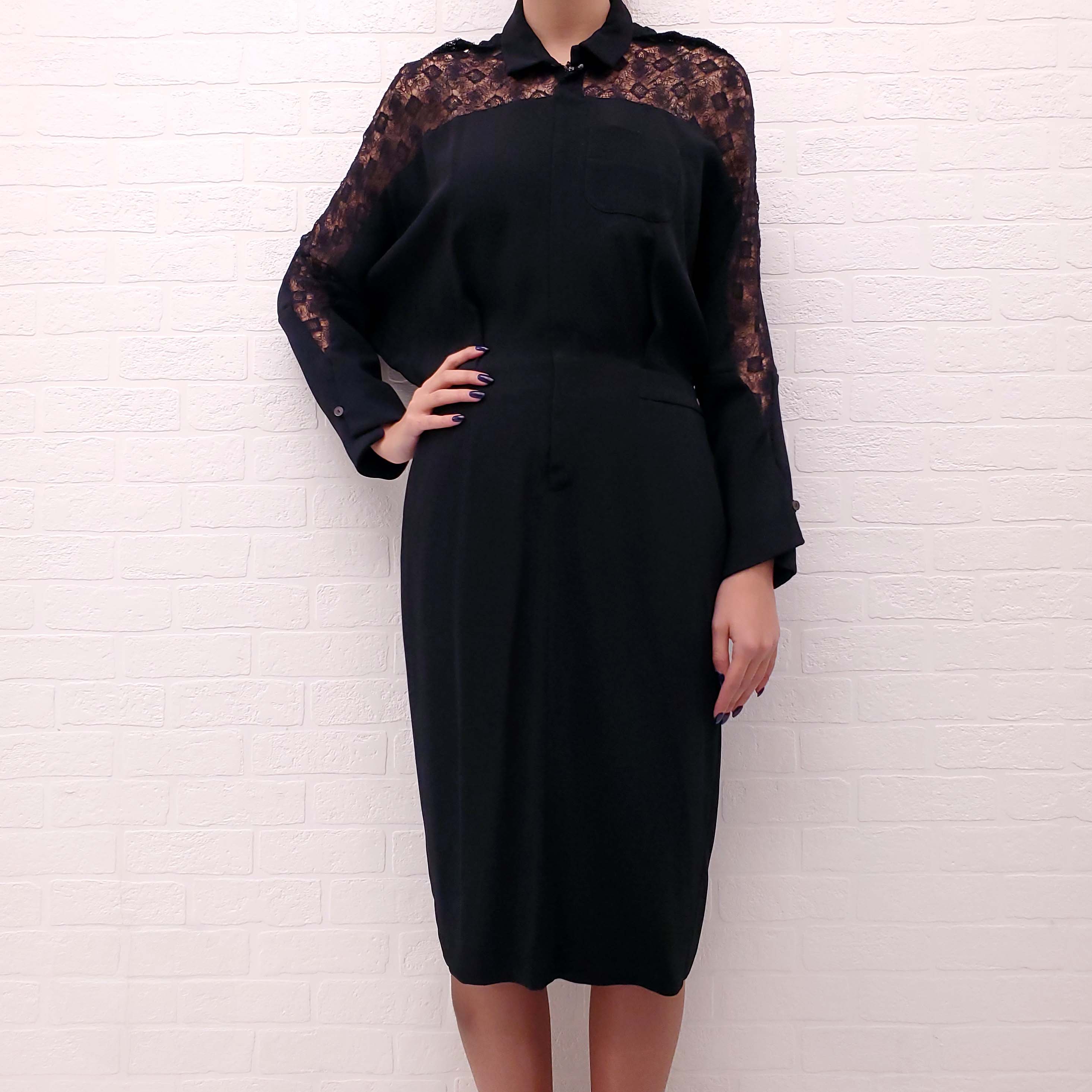 ROLAND MOURET BLACK DRESS WITH LACE SLEEVES - SIZE 10
