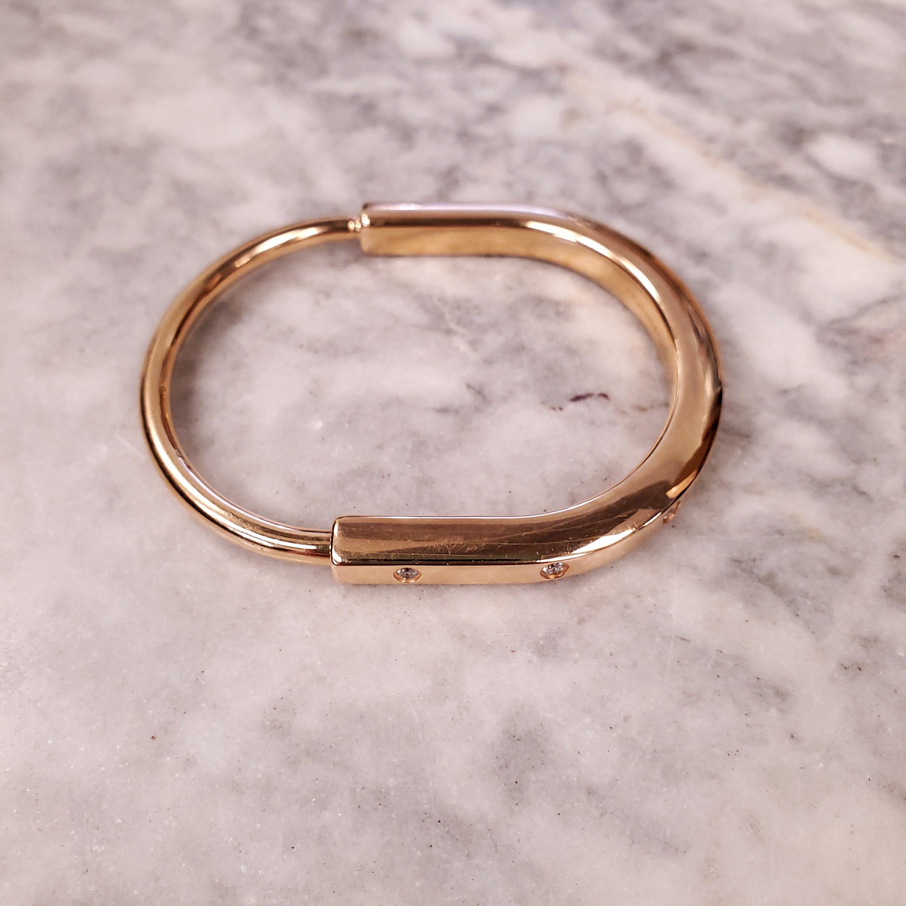 TIFFANY & CO LOCK BANGLE IN YELLOW GOLD WITH DIAMOND ACCENTS
