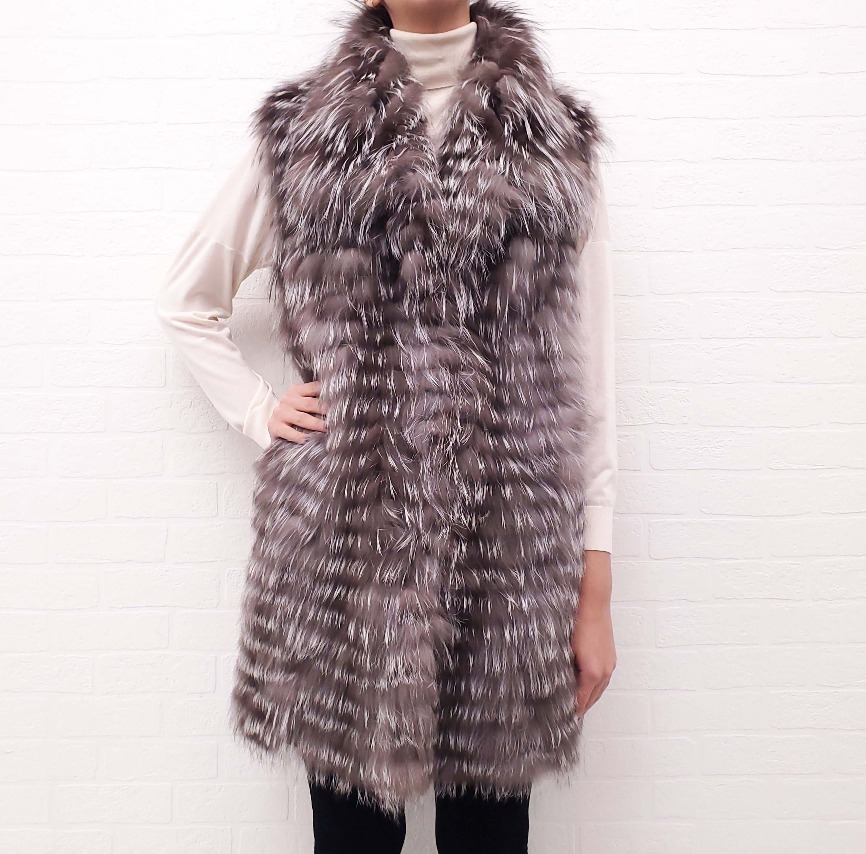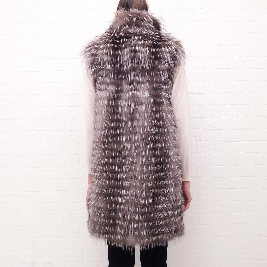 YVES SALOMON FUR GREY VEST WITH SHIMMER INTERIOR - SIZE 38