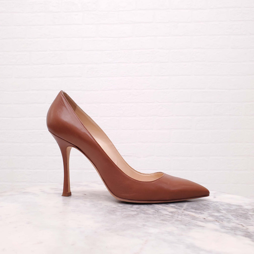 MANOLO BLAHNIK BROWN LEATHER HEELS - SIZE 42