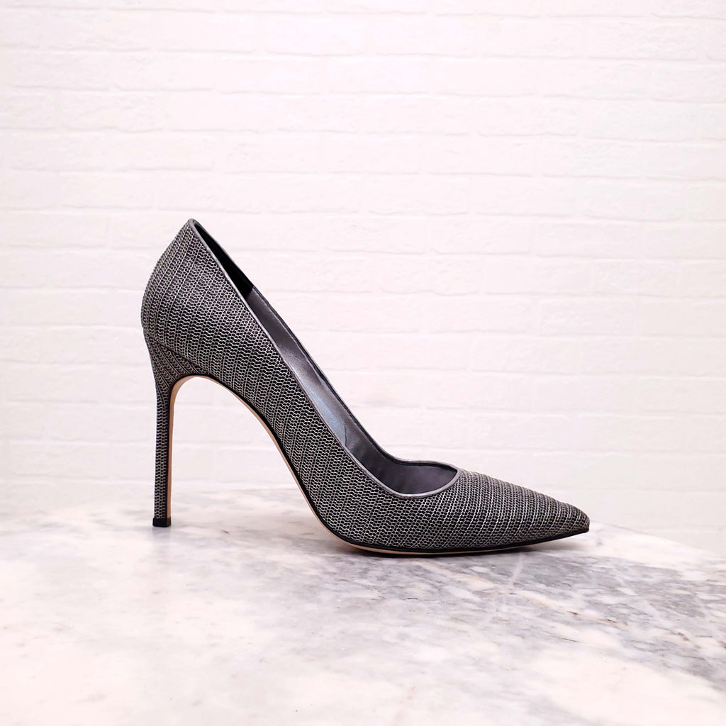 MANOLO BLAHNIK SILVER CHAIN HEELS - SIZE 42