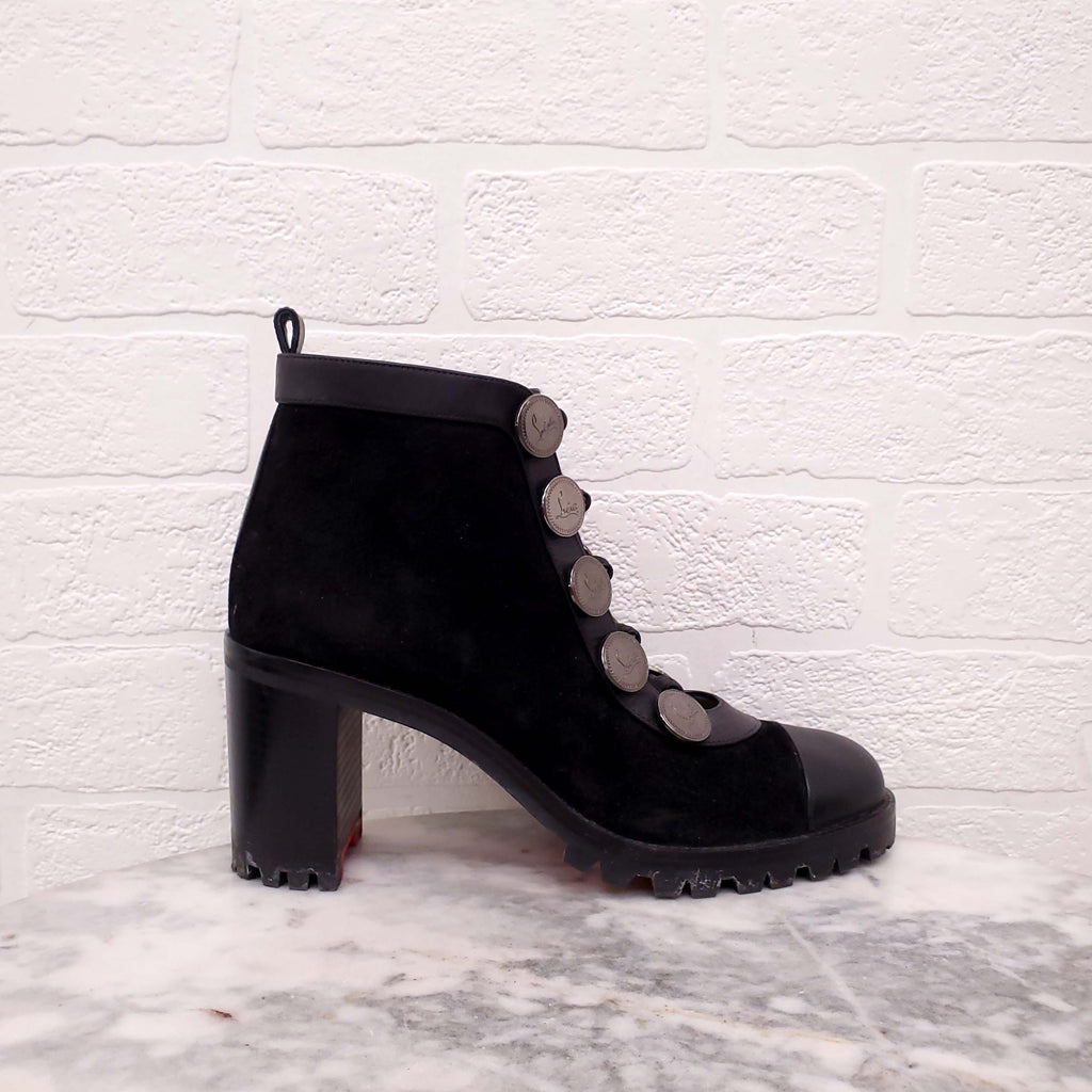 CHRISTIAN LOUBOUTIN BLACK SUEDE COMBAT BOOTIES - SIZE 37