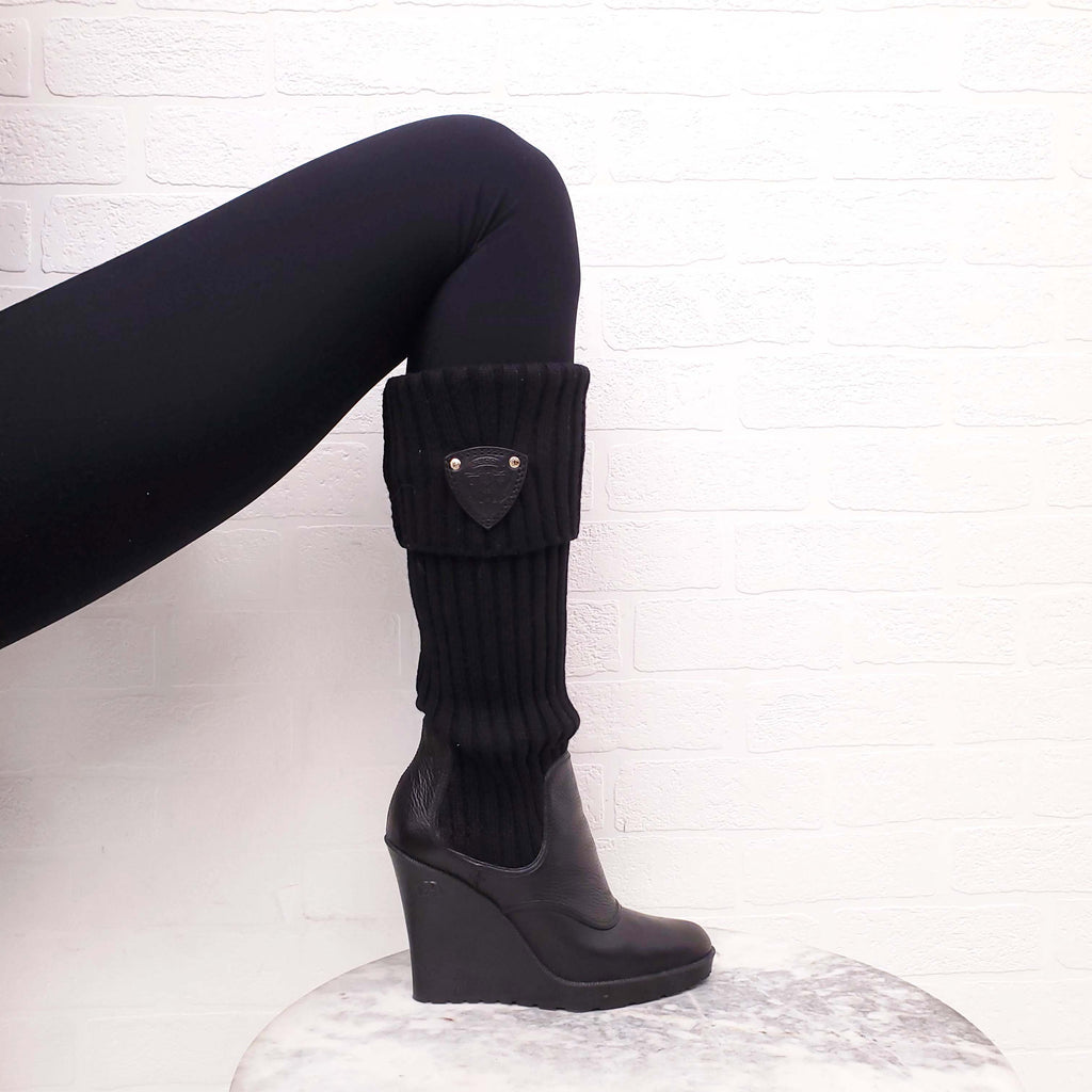 GUCCI BLACK LEATHER AND RUBBER KNEE HIGH SOCK BOOTS WITH LOGO - SIZE 37