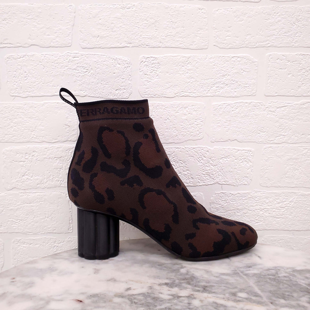 FERRAGAMO BROWN LEOPARD SOCK BOOTIES - SIZE 7B