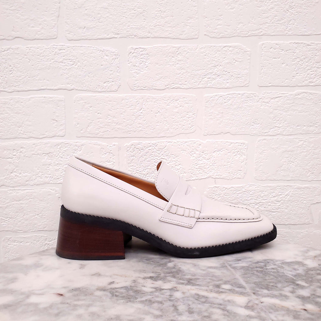 TODS WHITE BLOCK HEELS LOAFERS - SIZE 37
