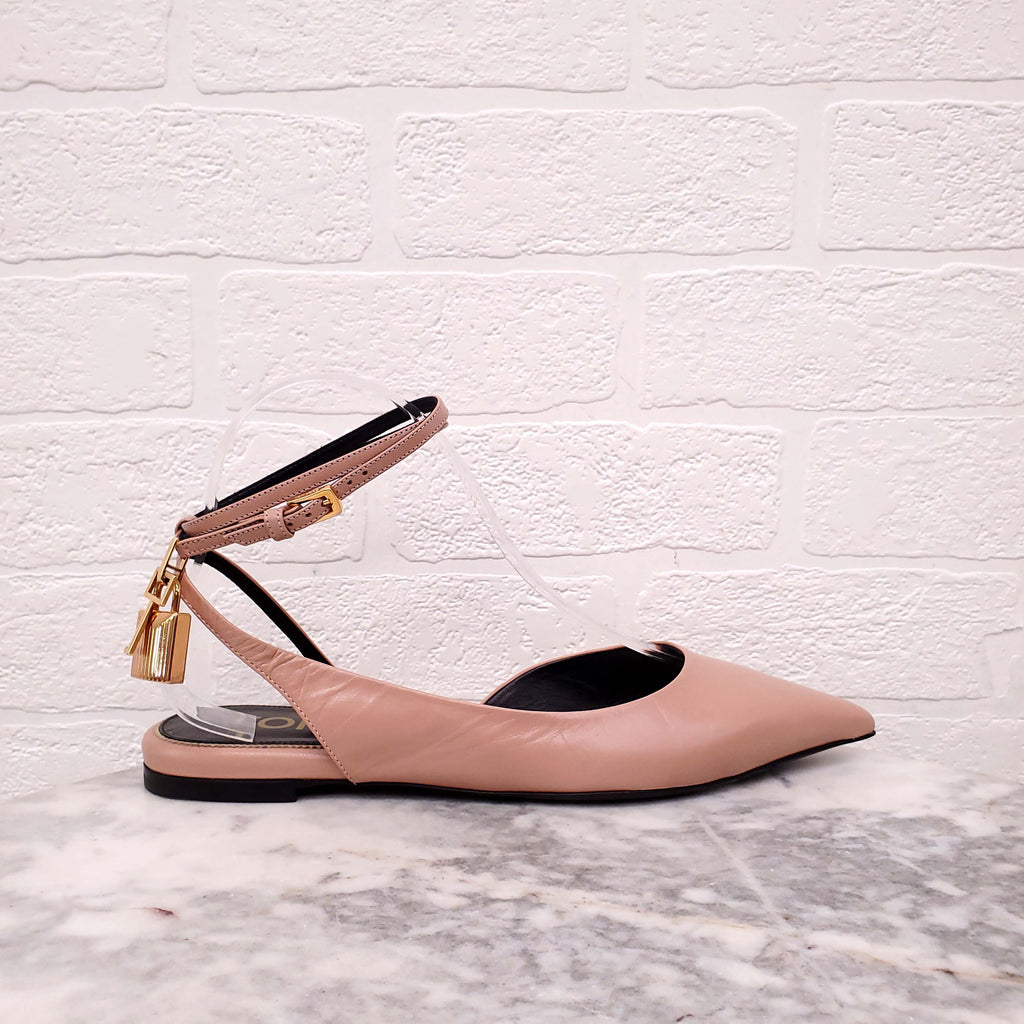 TOM FORD NUDE LEATHER FLATS WITH LOCK ANKLET - SIZE 37.5