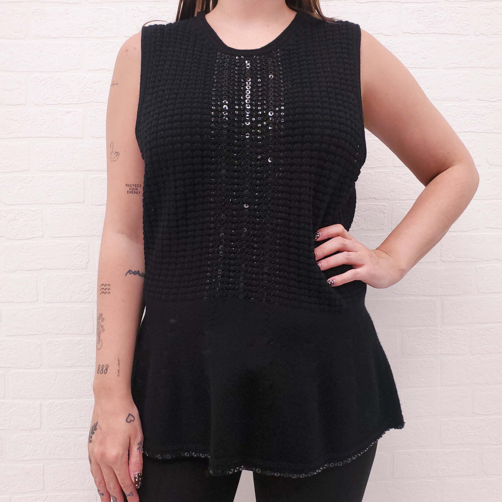 OSCAR DE LA RENTA BLACK KINT TANK TOP WITH SEQUINS - SIZE XL