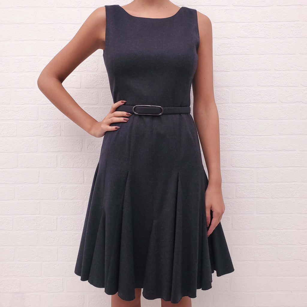 OSCAR DE LA RENTA GREY WOOL DRESS WITH BELT - SIZE 6