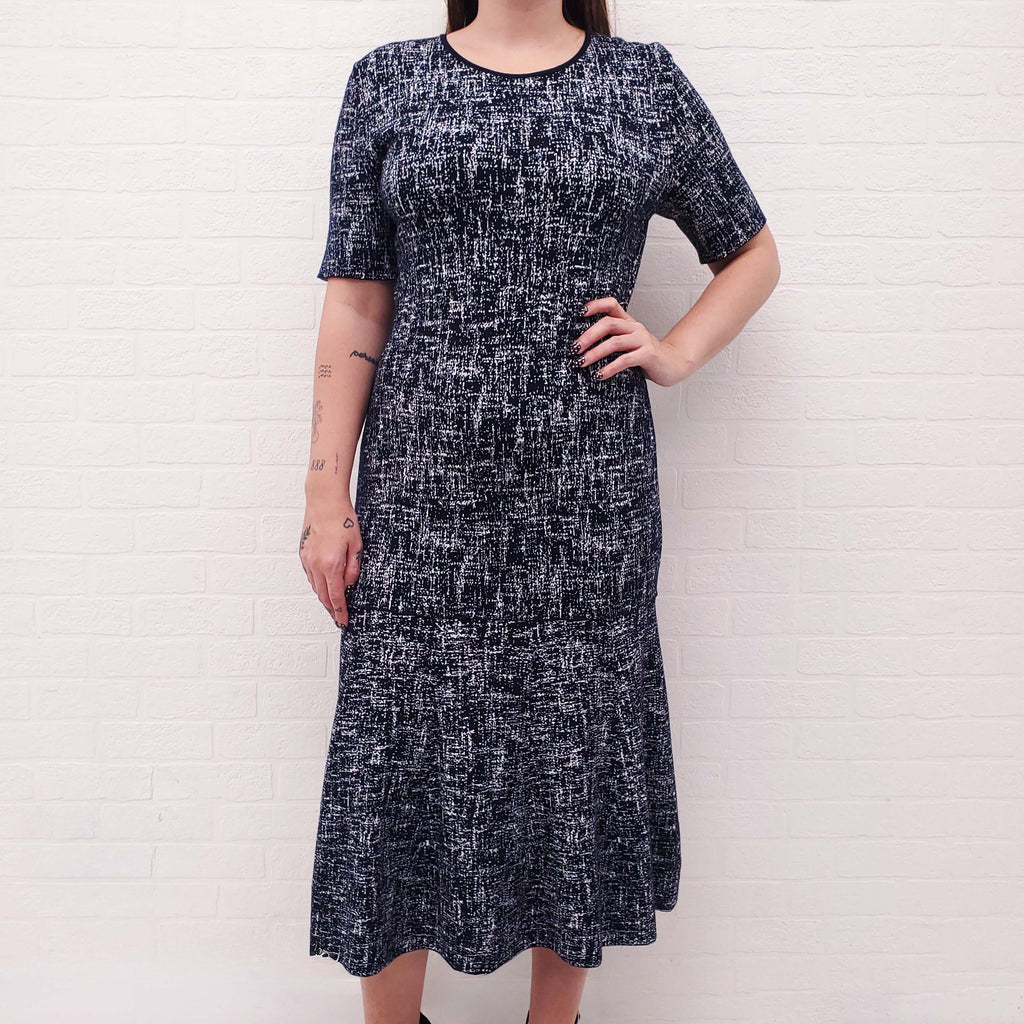 OSCAR DE LA RENTA NAVY AND WHITE PATTERNED KNIT DRESS - SIZE XL