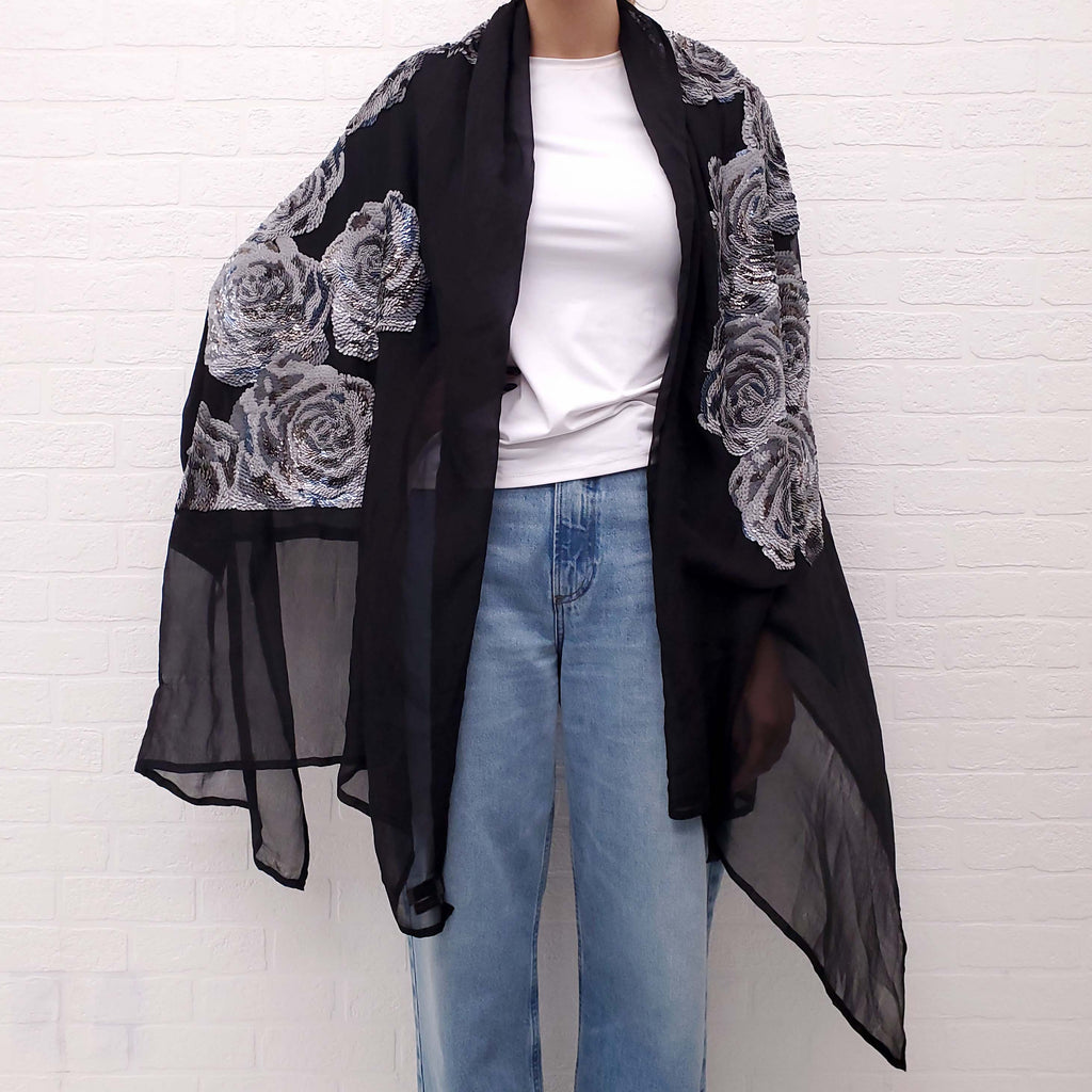 DRIES VAN NOTEN BLACK AND SILVER SEQUIN SHAWL