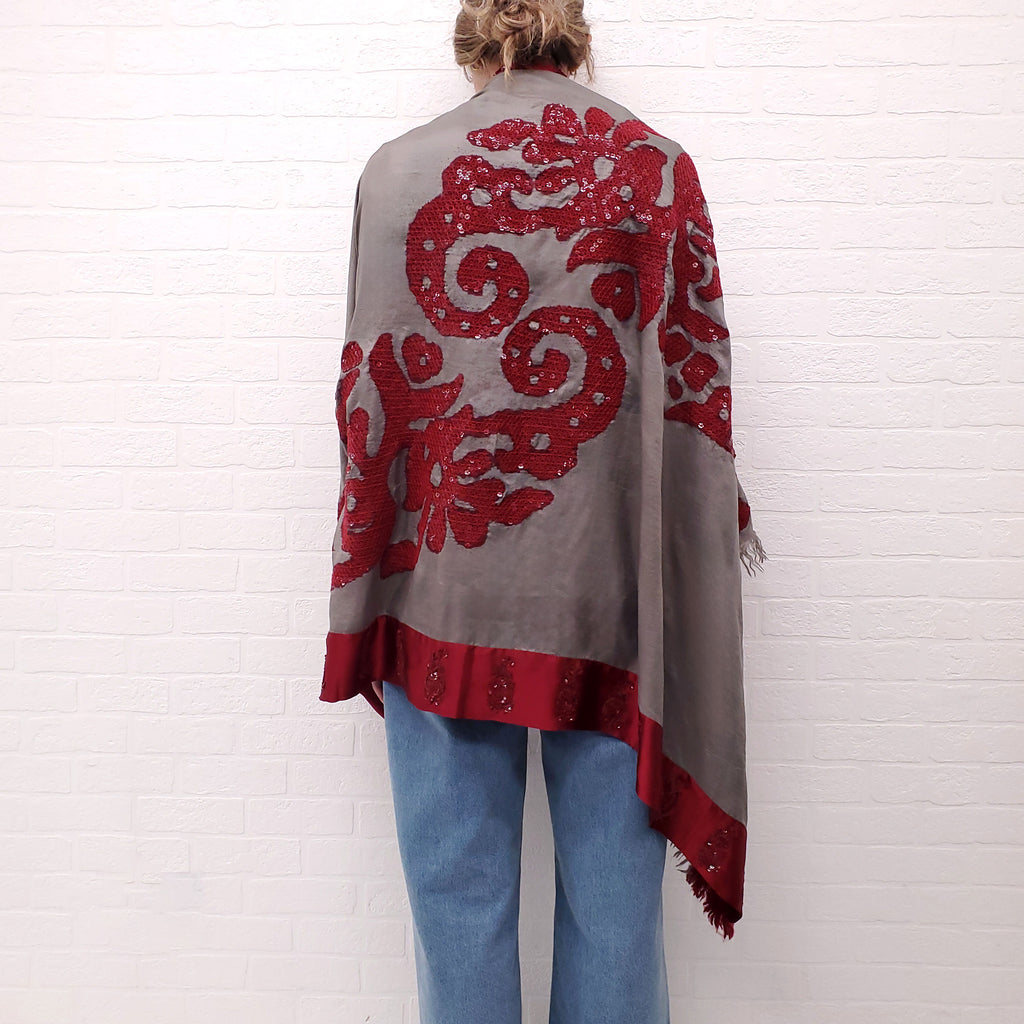 DRIES VAN NOTEN GREY AND RED SEQUIN SHAWL