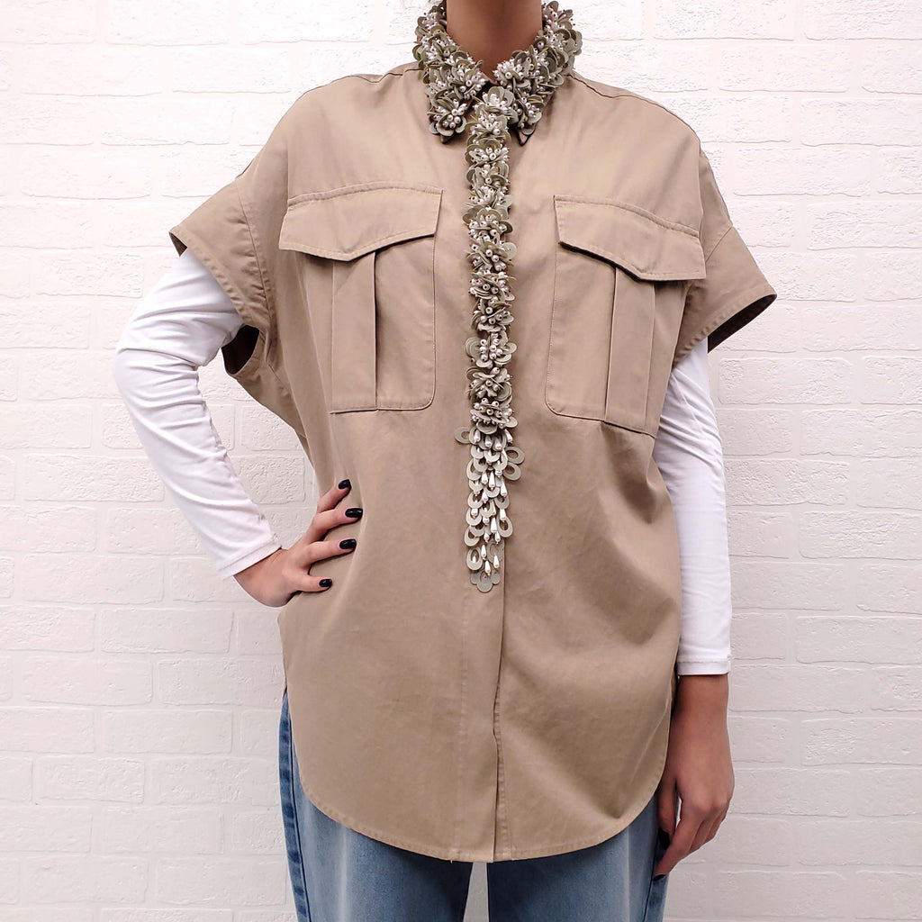 DRIES VAN NOTEN KHAKI JACKET WITH SEQUIN NECKLINE - SIZE XS