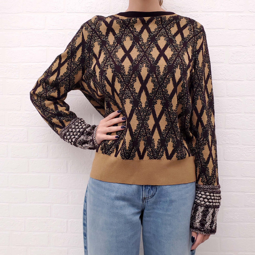 DRIES VAN NOTEN SPARKLE BROWN ARGYLE SWEATER - SIZE L