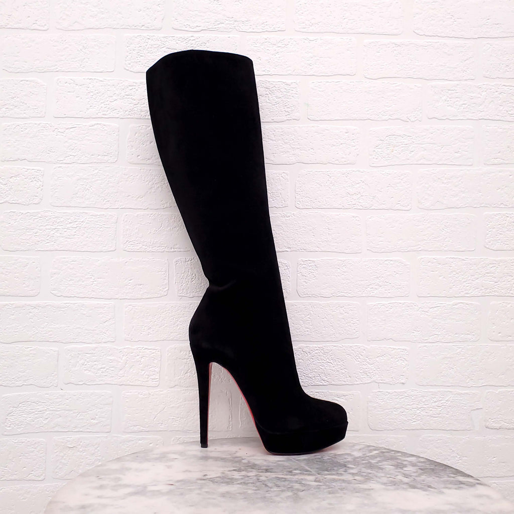 CHRISTIAN LOUBOUTIN BLACK SUEDE THIGH HIGH BOOTS - SIZE 39