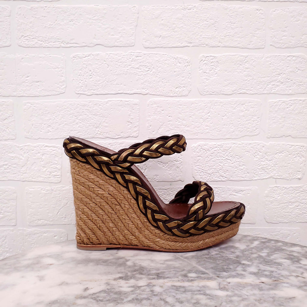 CHRISTIAN LOUBOUTIN BRAIDED LEATHER PLATFORM ESPADRILLES - SIZE 40