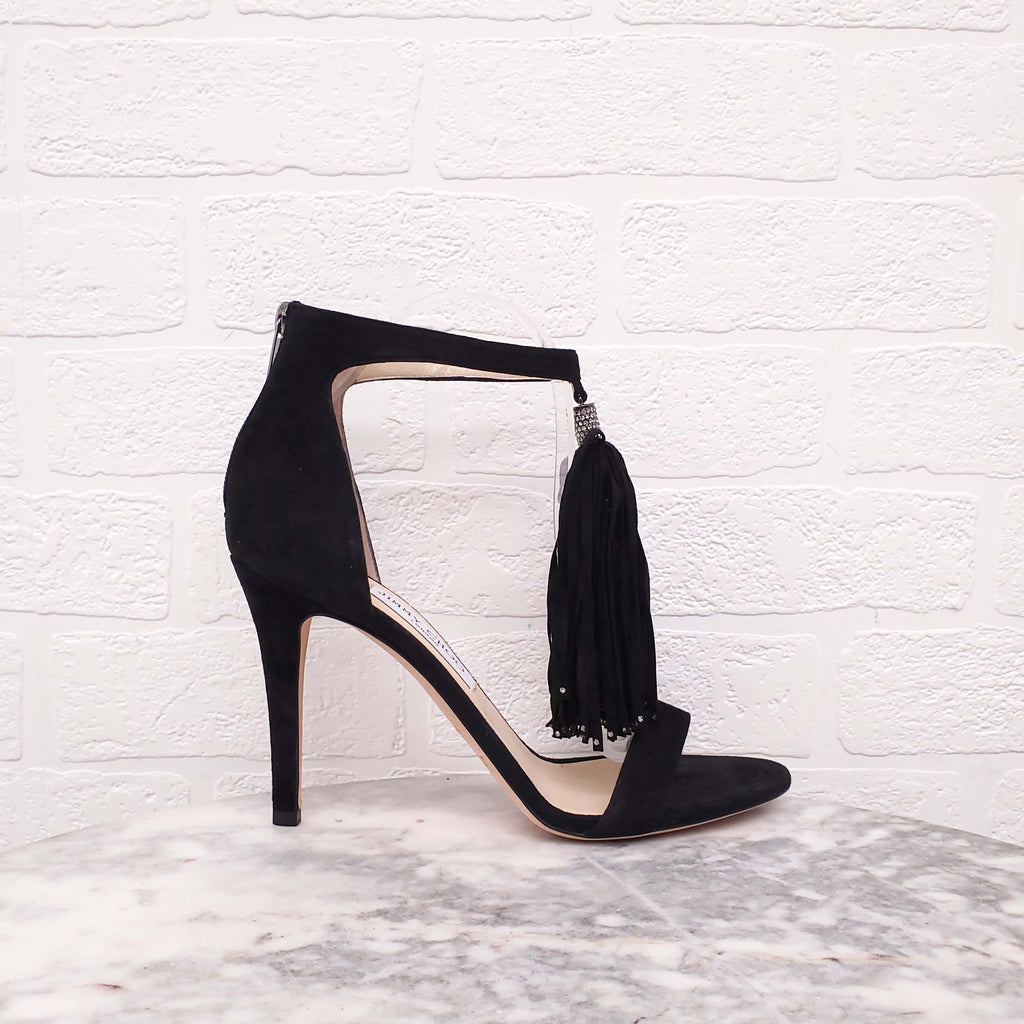 JIMMY CHOO BLACK 'VIOLA 100' CRYSTAL TASSEL HEELS - SIZE 40