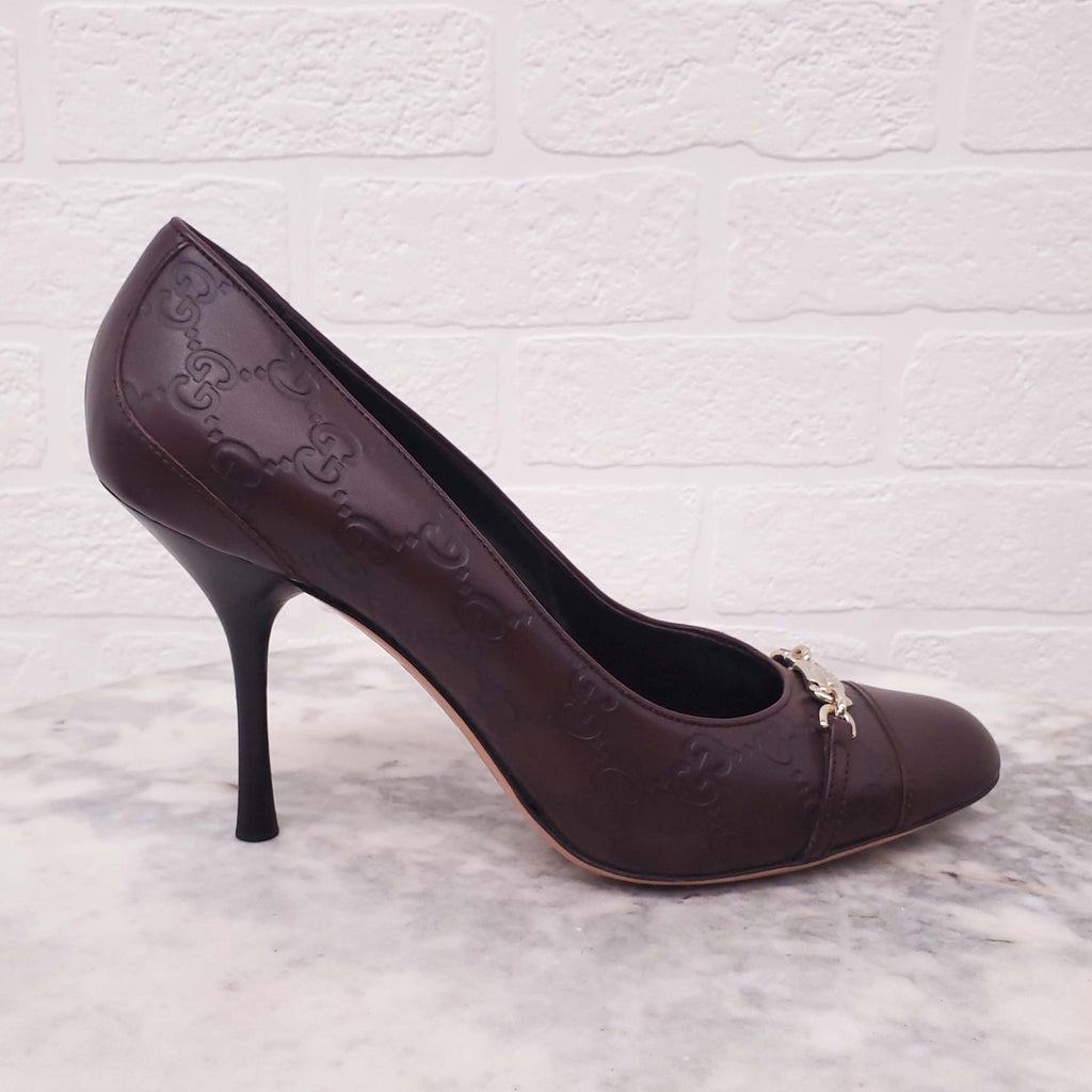 GUCCI BROWN EMBOSSED LOGO HEELS