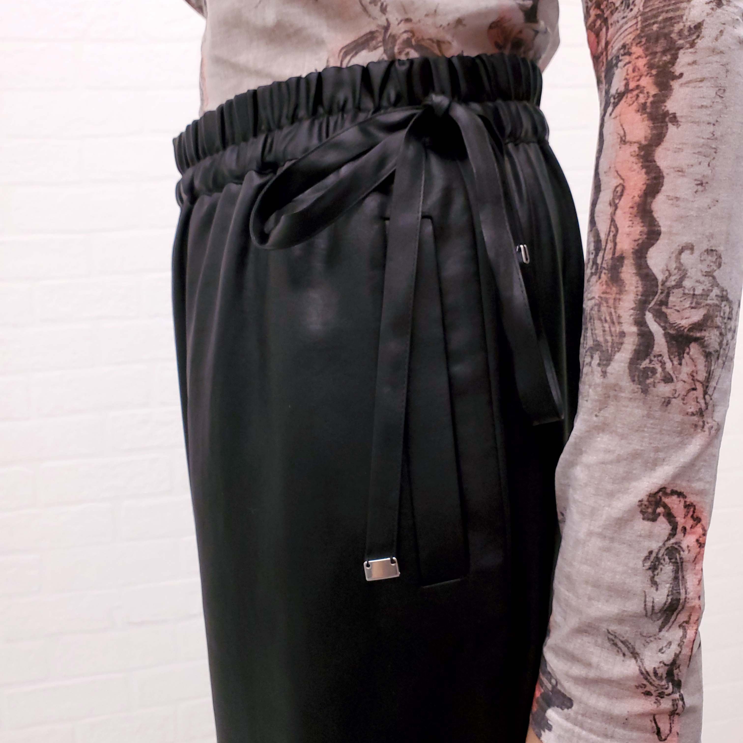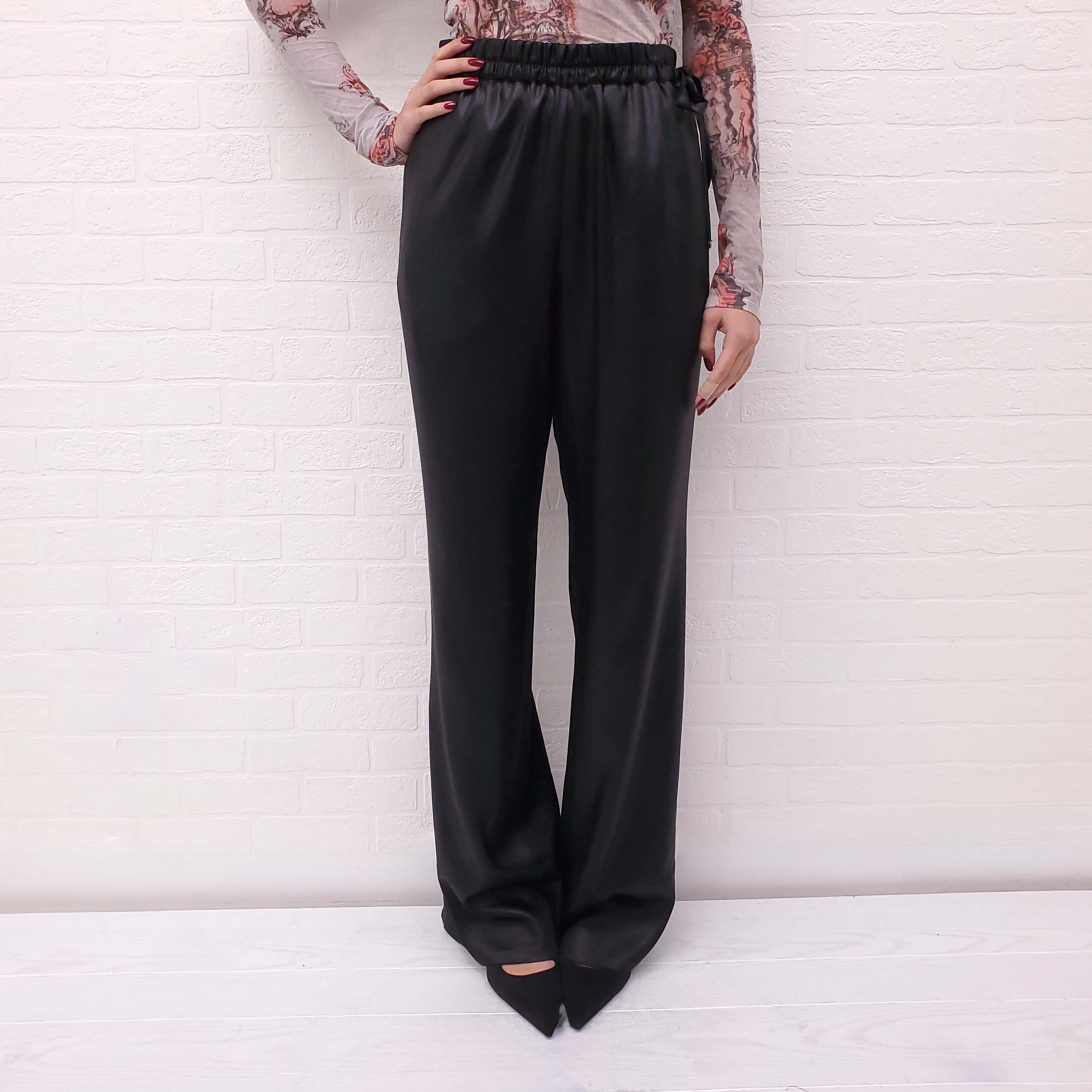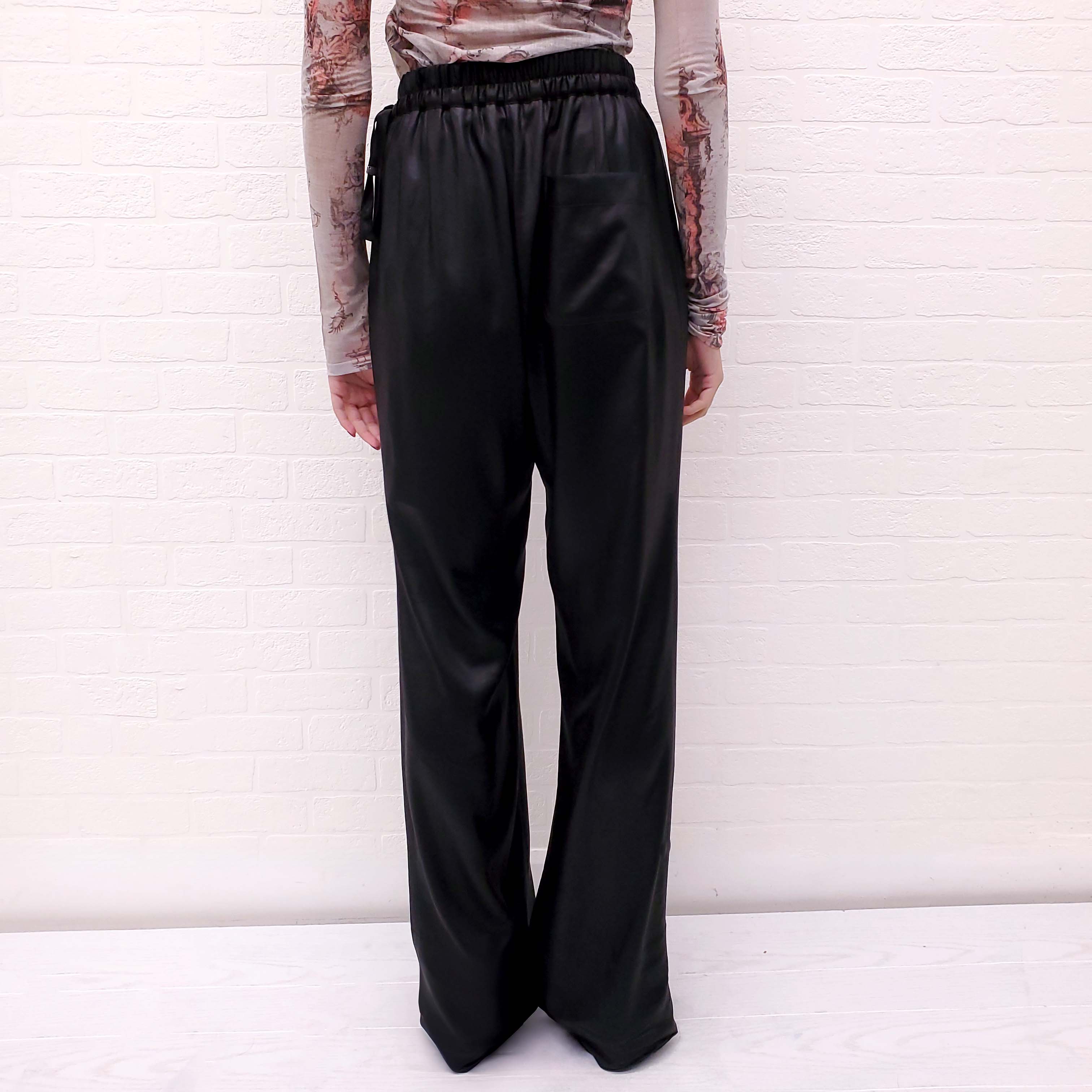 ACNE STUDIOS BLACK SATIN EFFECT PANTS WITH SIDE TIE - SIZE 36