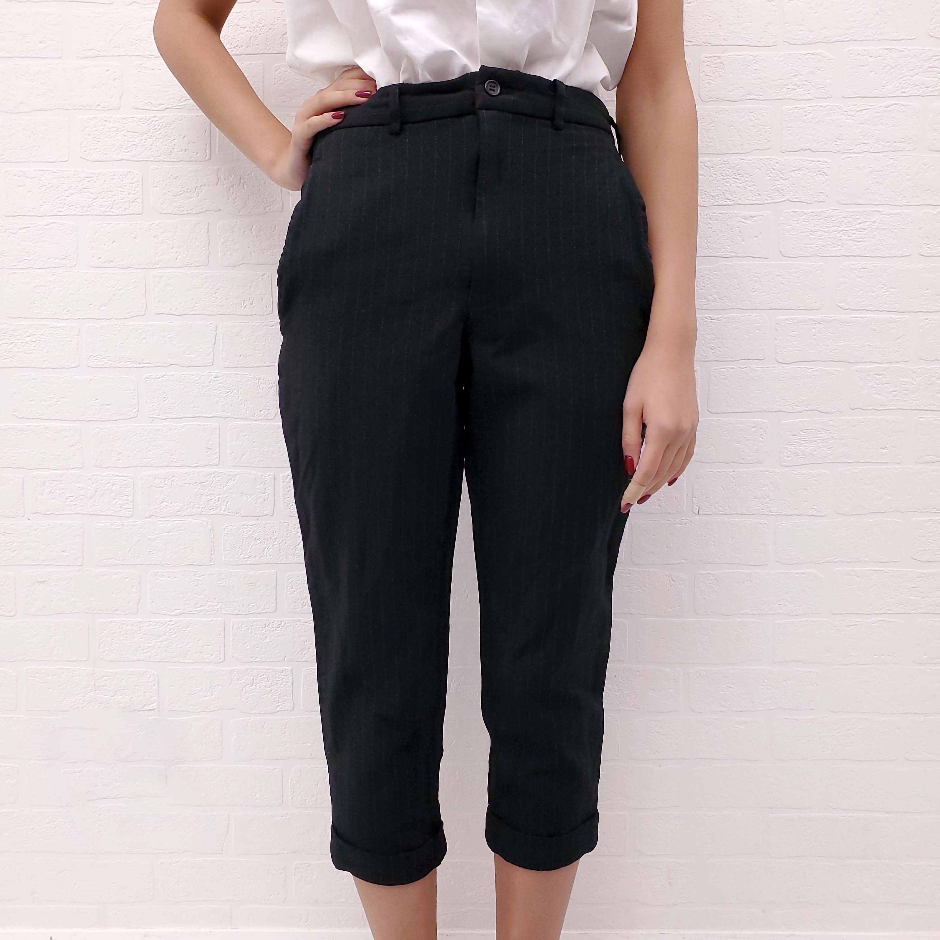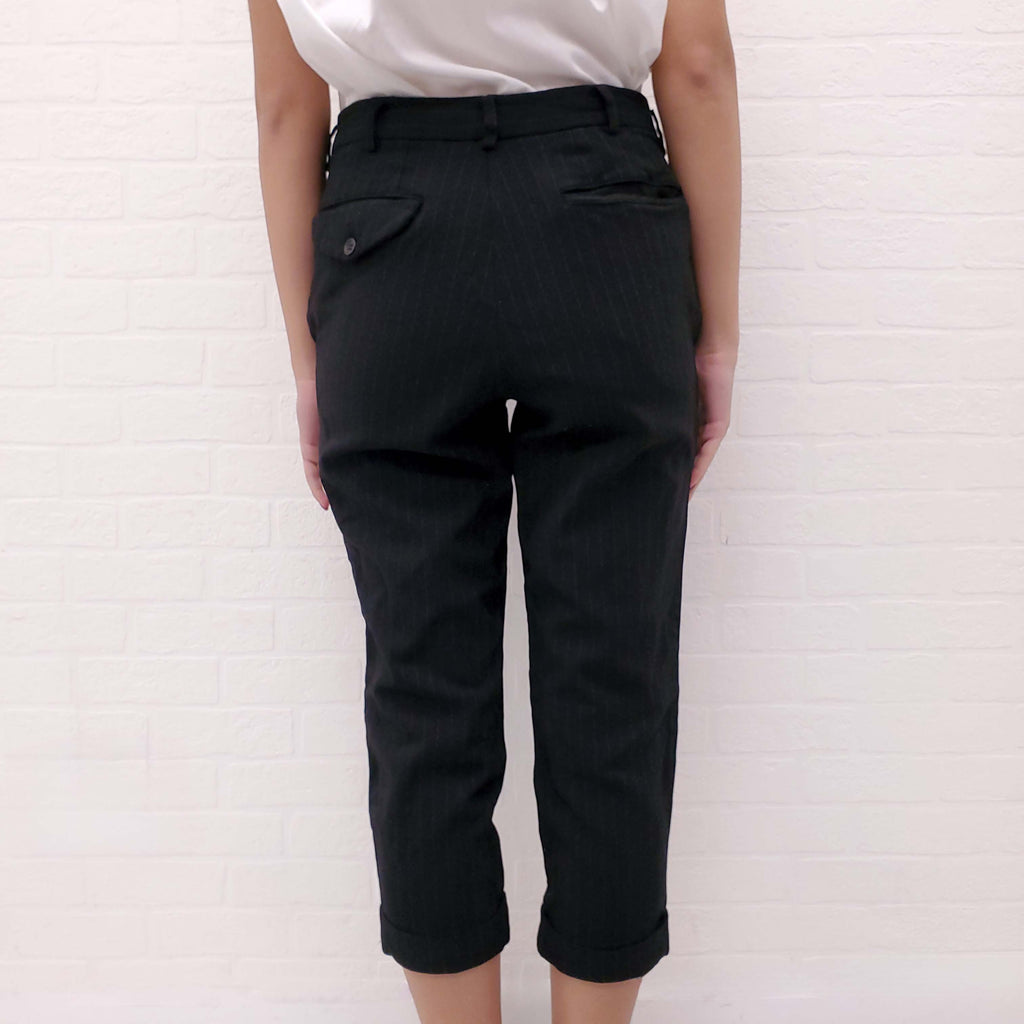 COMME DES GARÇONS BLACK PINSTRIPED CROPPED TROUSERS - SIZE S