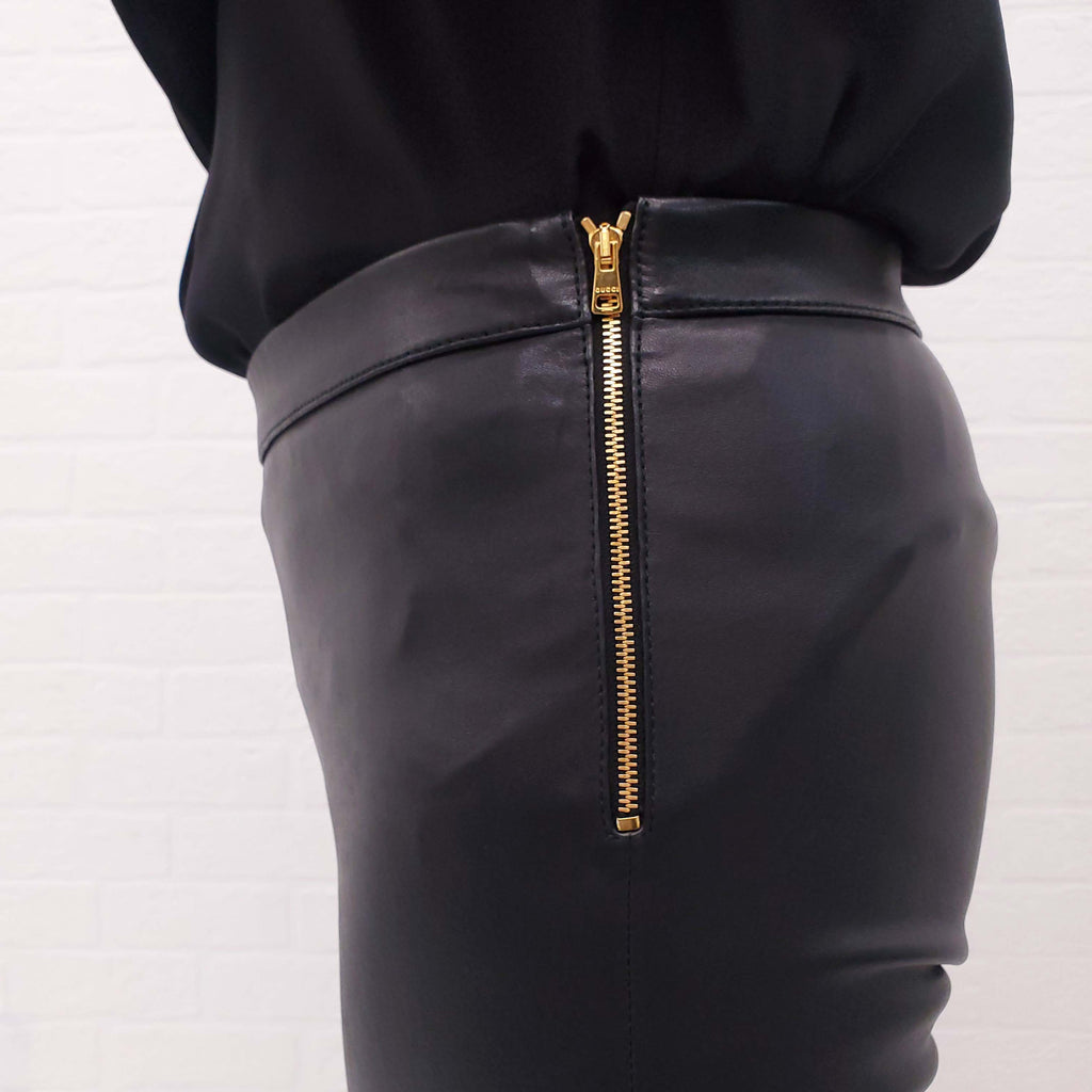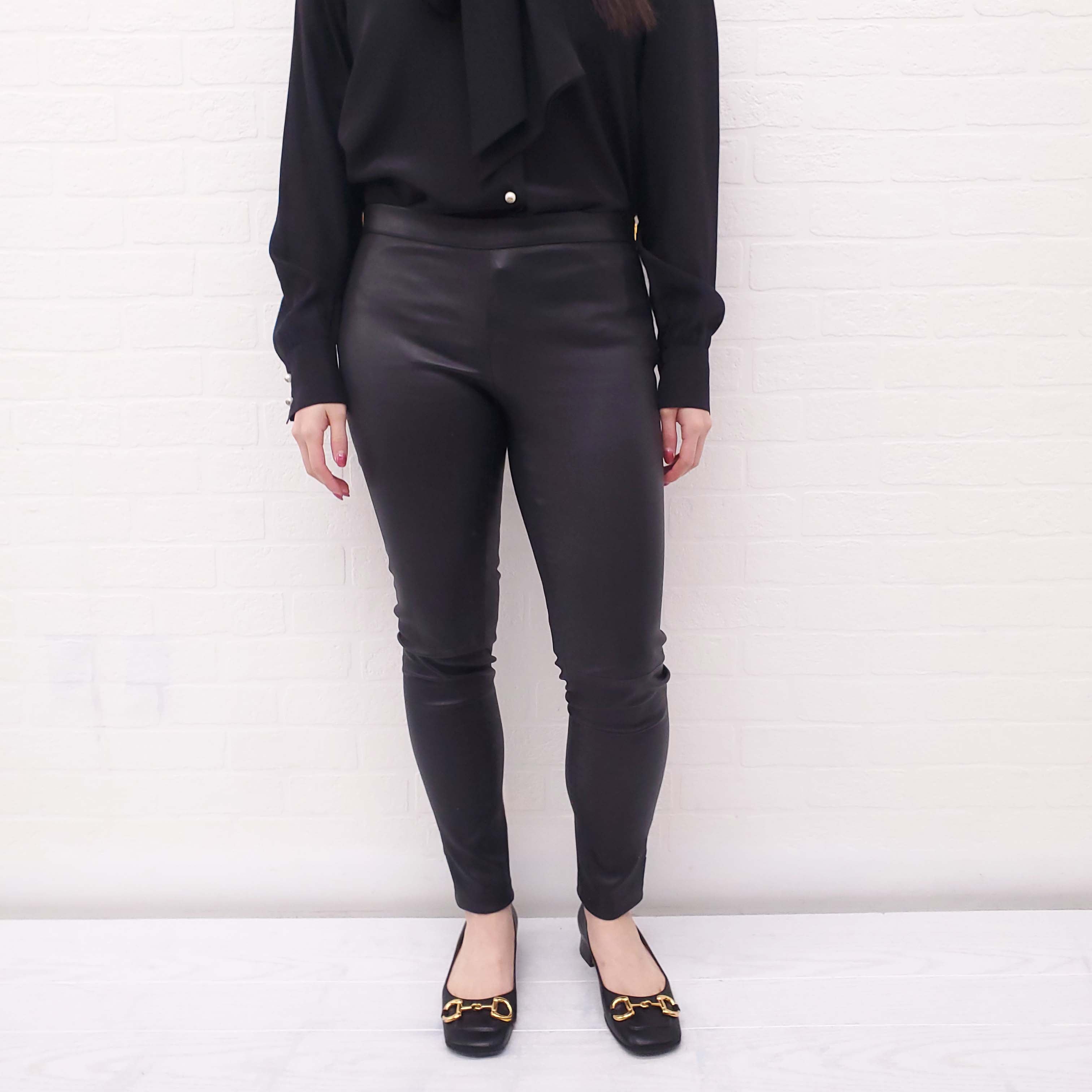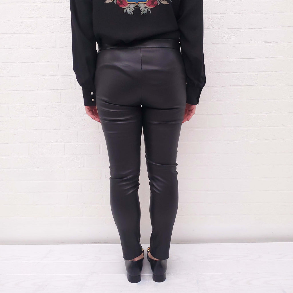 GUCCI BLACK LEATHER LEGGINGS WITH GOLD ZIPPER - SIZE 40