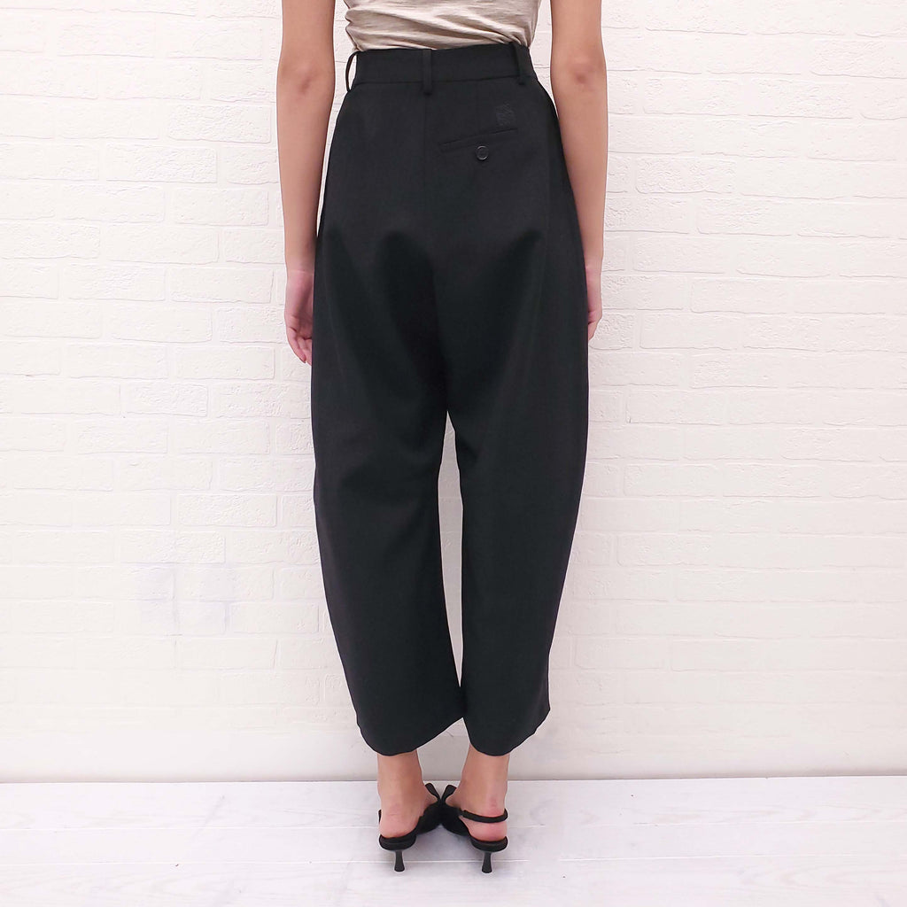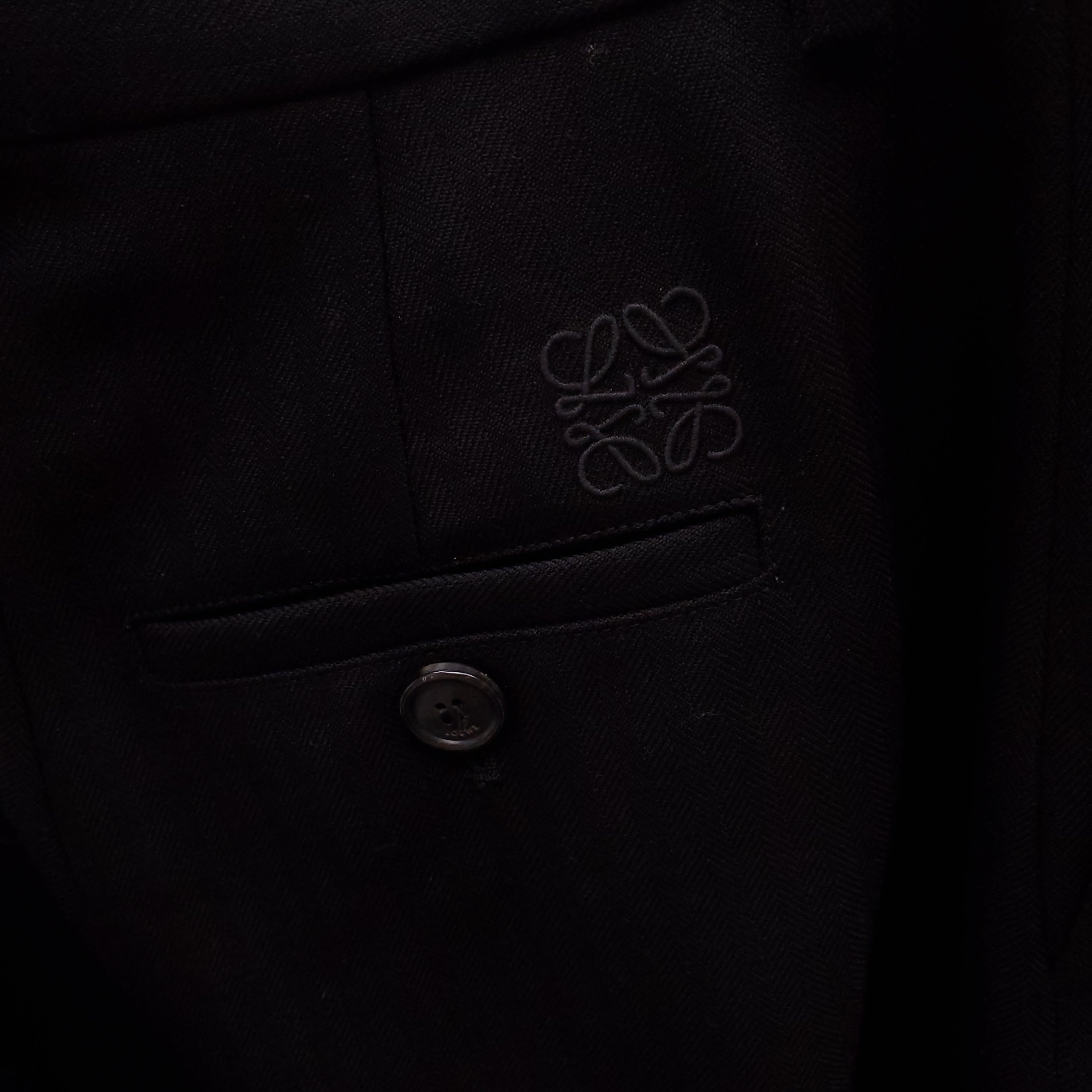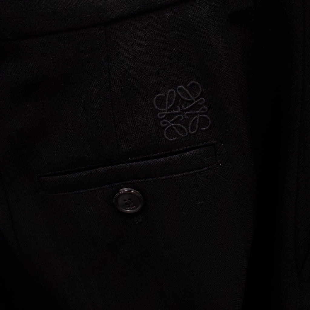 LOEWE BLACK SILK AND COTTON HERRINGBONE TROUSERS WITH LOGO - SIZE 34