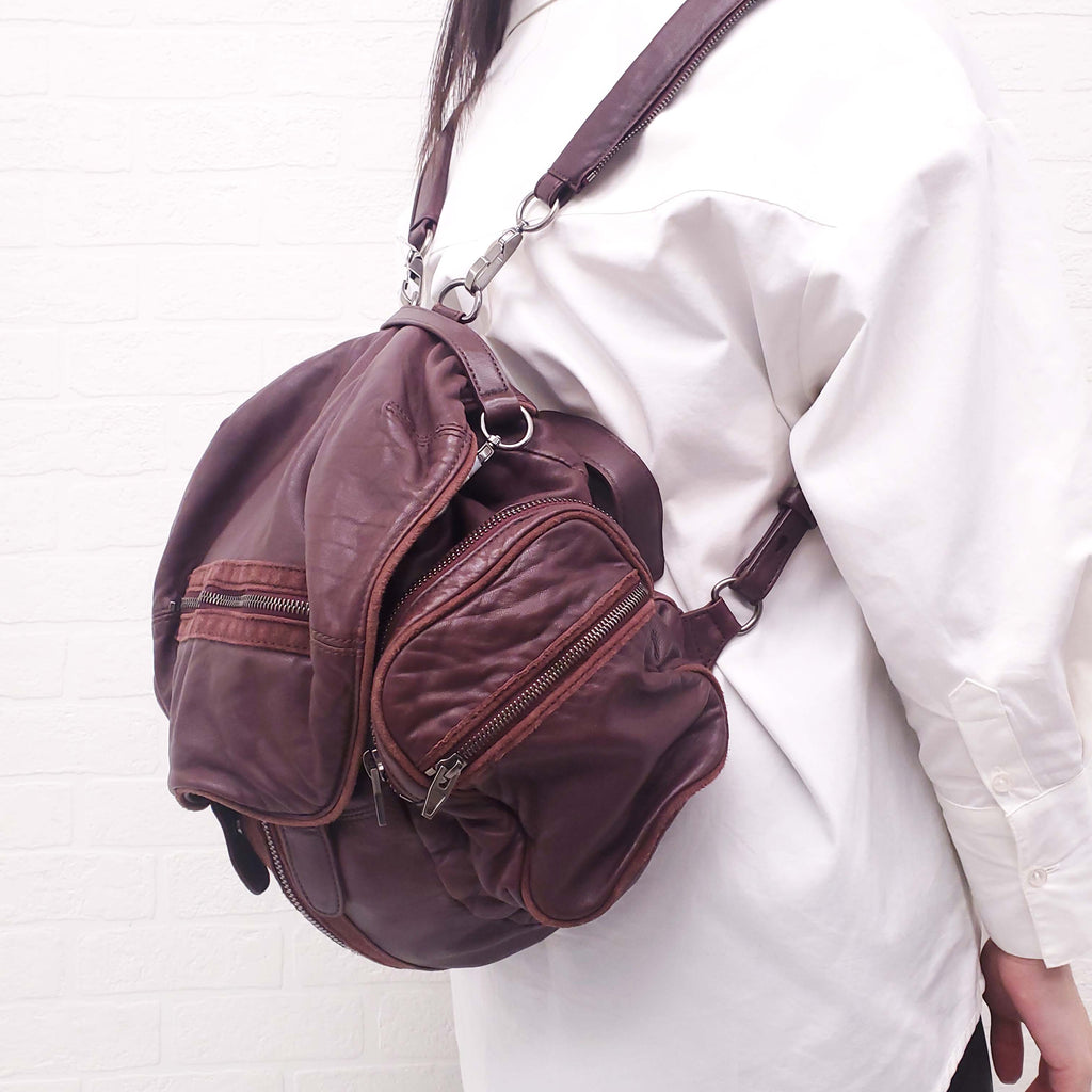 ALEXANDER WANG BURGUNDY LEATHER BACKPACK WITH SILVER ZIPPERS