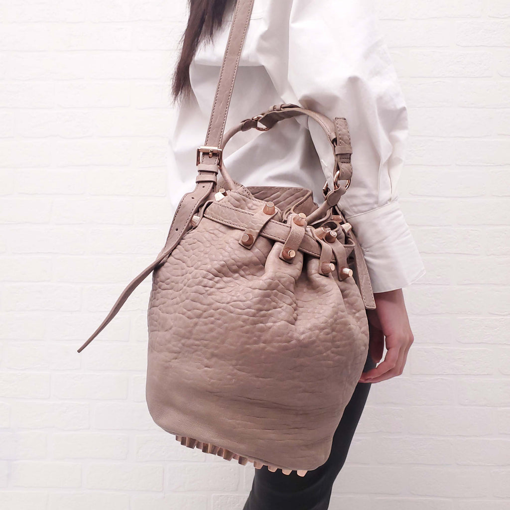 ALEXANDER WANG NUDE LEATHER 'ROCCO' BUCKET BAG WITH ROSE GOLD STUDS