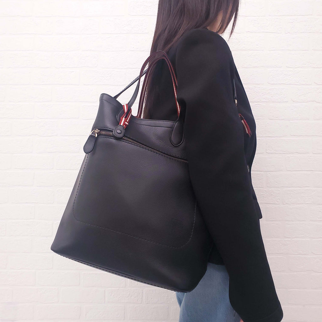 GUCCI BLACK LEATHER LARGE 'DECO' TOTE