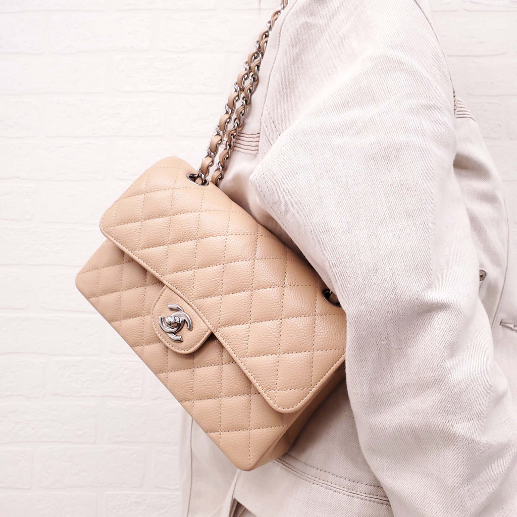 CHANEL NUDE CAVIAR SMALL DOUBLE FLAP BAG