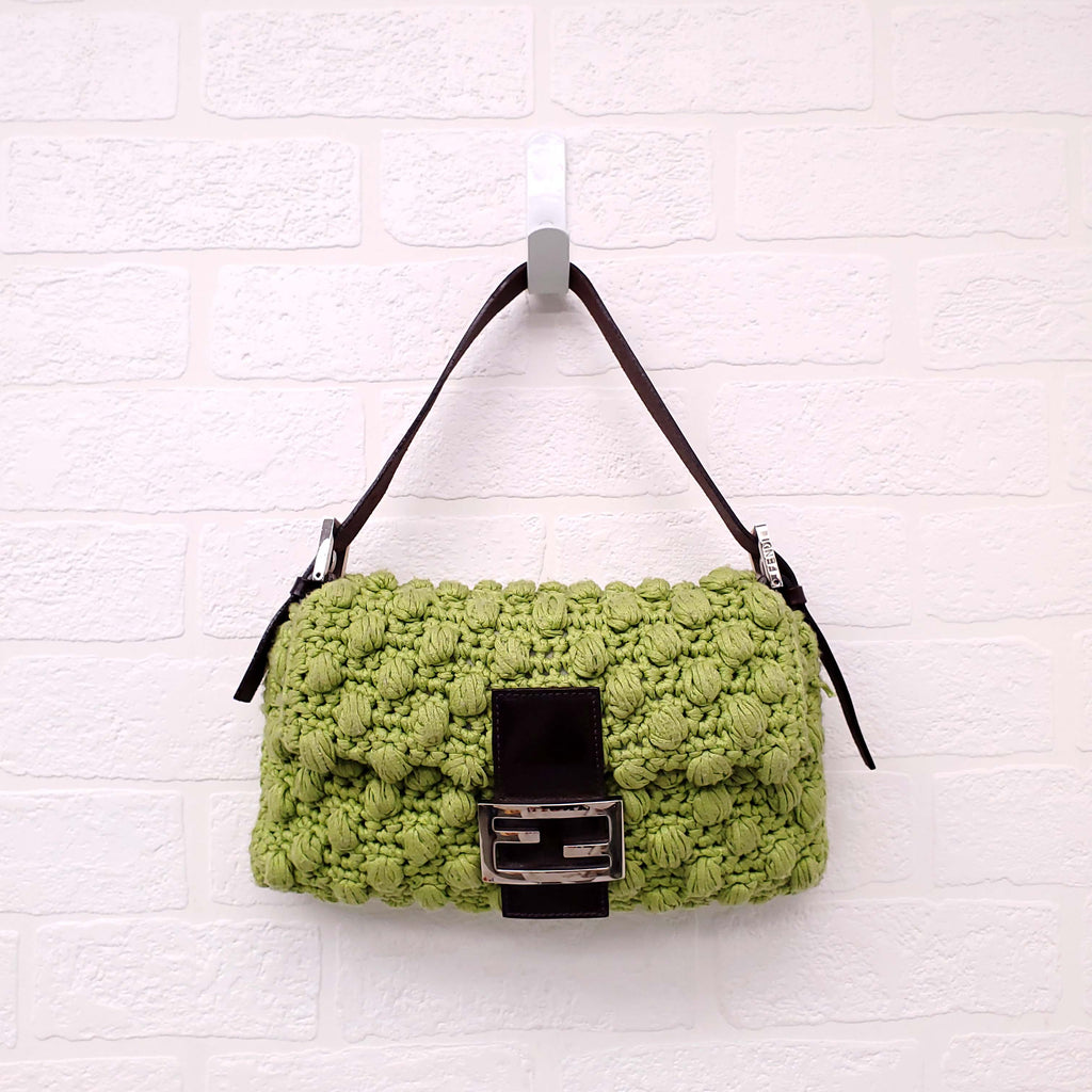 FENDI LIME GREEN CROCHET 'BAGUETTE' SHOULDER BAG