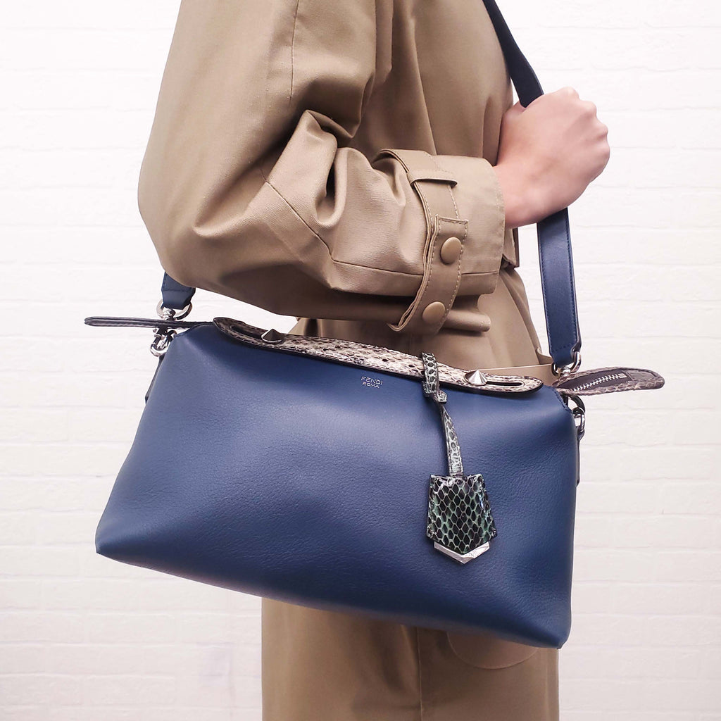 FENDI NAVY LEATHER AND SNAKESKIN 'BY THE WAY WAY' CROSSBODY BAG