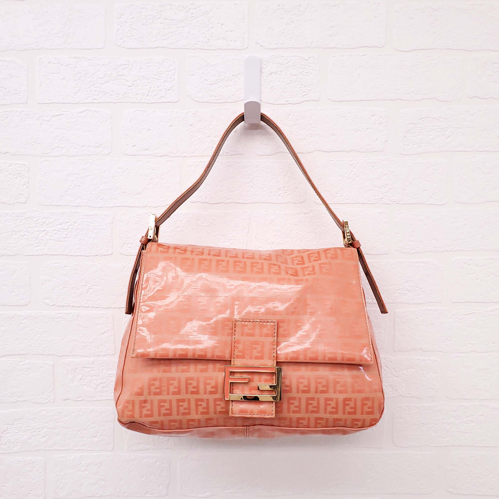 FENDI ORANGE COATED CANVAS 'ZUCCHINO MAMMA BAGUETTE' SHOULDER BAG