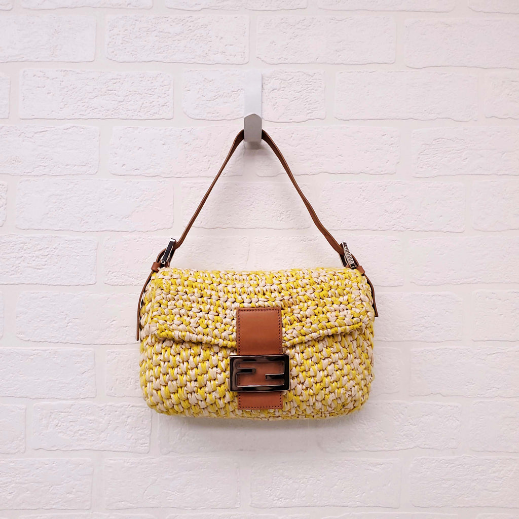 FENDI YELLOW RAFFIA 'BAGUETTE' SHOULDER BAG