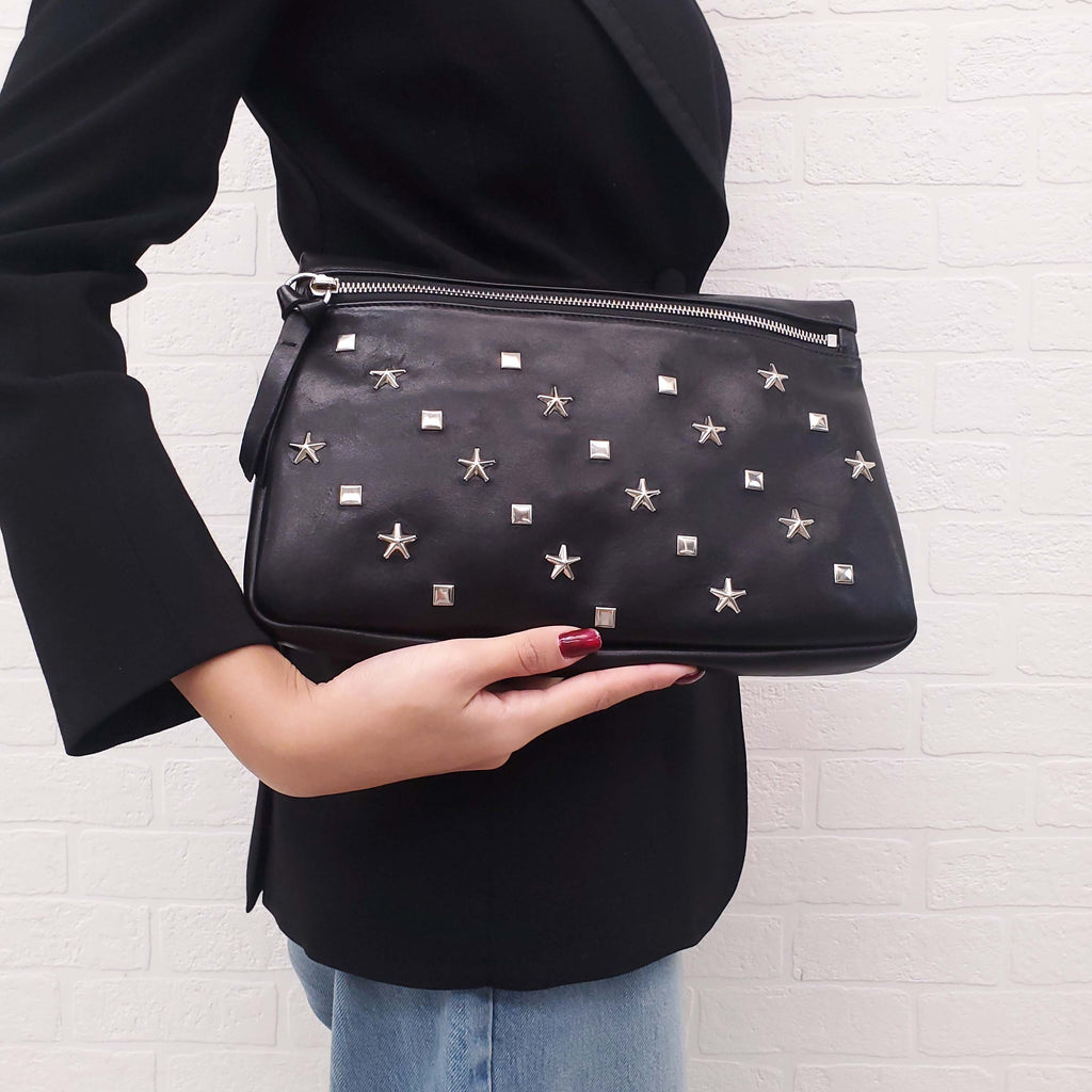 JIMMY CHOO BLACK LEATHER STAR CLUTCH