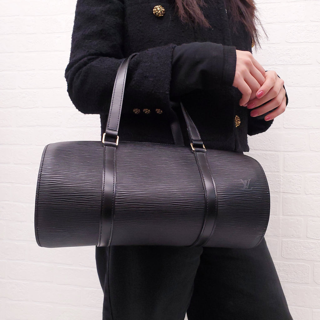LOUIS VUITTON BLACK EPI LEATHER SOUFFLOT BAG