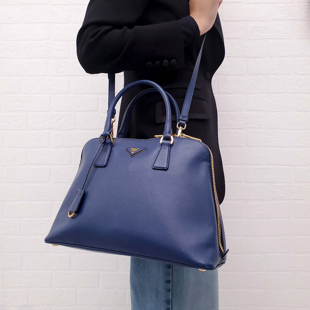 PRADA BLUE SAFFIANO TOTE BAG WITH CROSSBODY