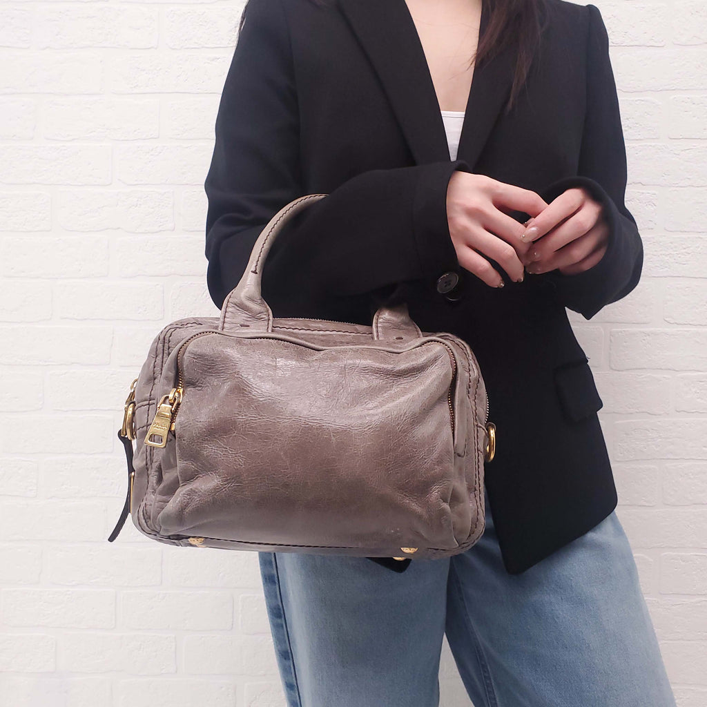 OFF-WHITE GREY LEATHER 'NAILED SLOUCHY 30 CLUTCH' SHOULDER BAG
